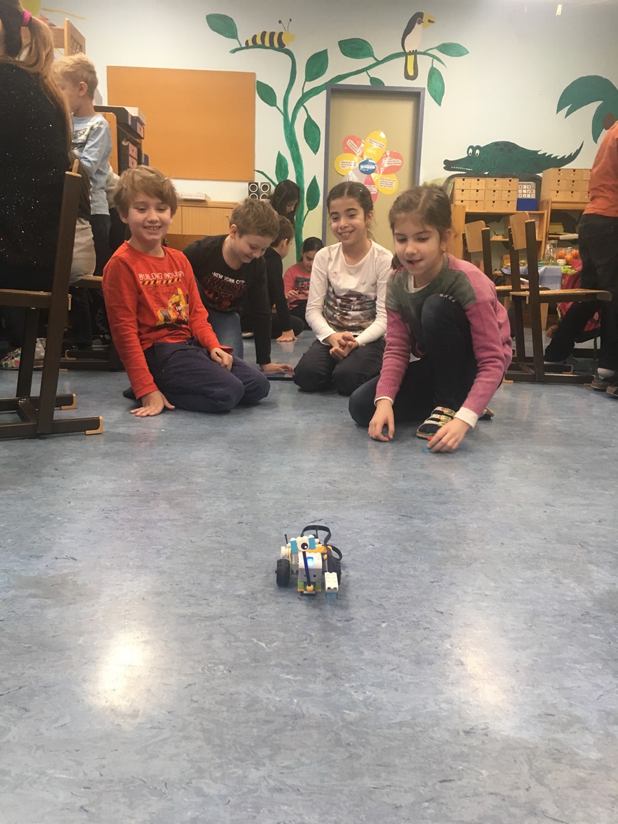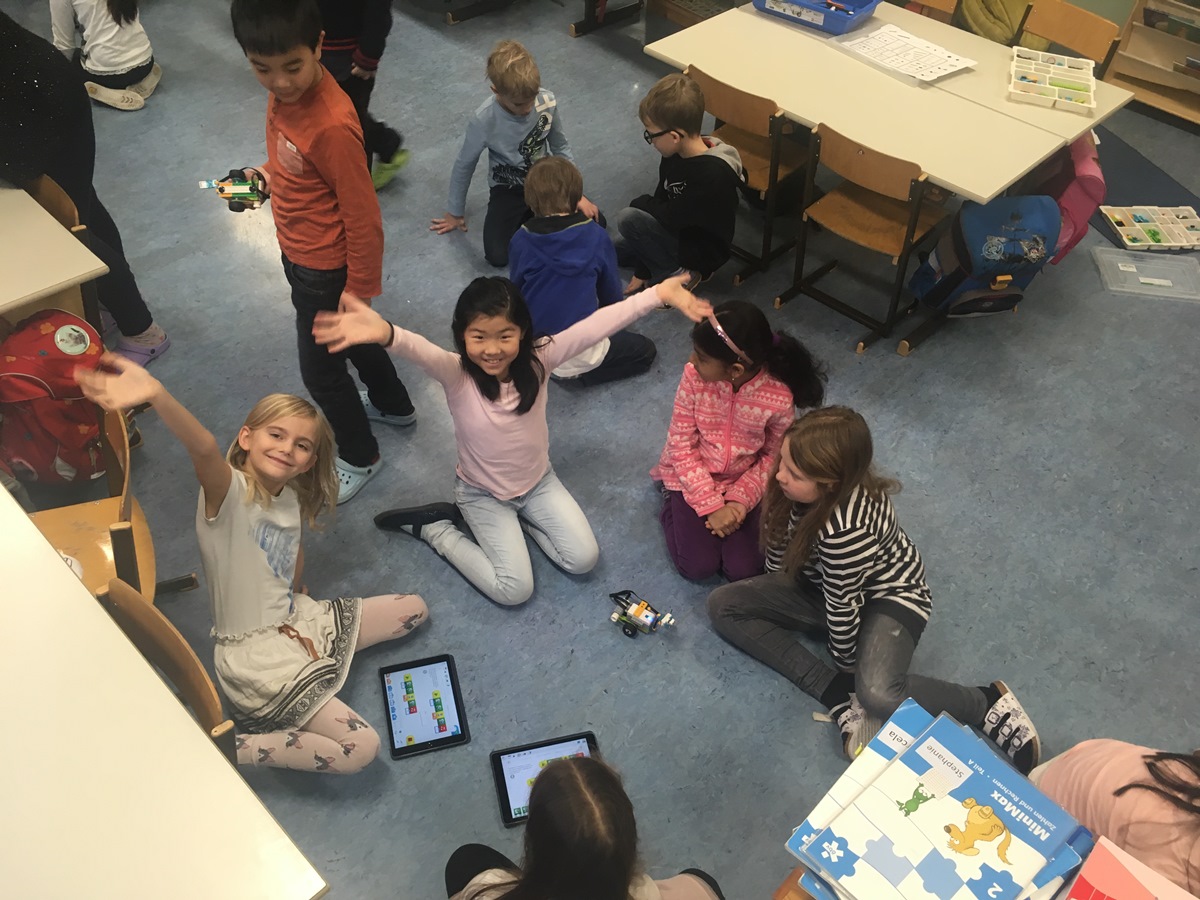 Bei der Reflexion – der dritten Phase – werden die Eindrücke und Erfahrungen der Kinder besprochen. Die Kinder sind begeistert und sie sind sehr geschickt beim Bauen und Programmieren.