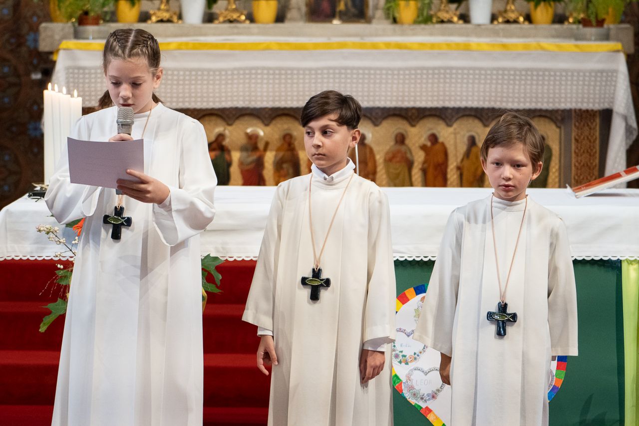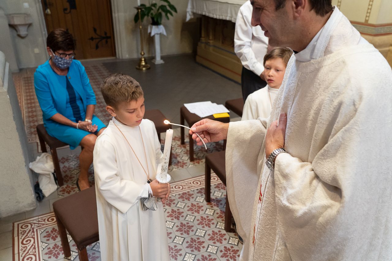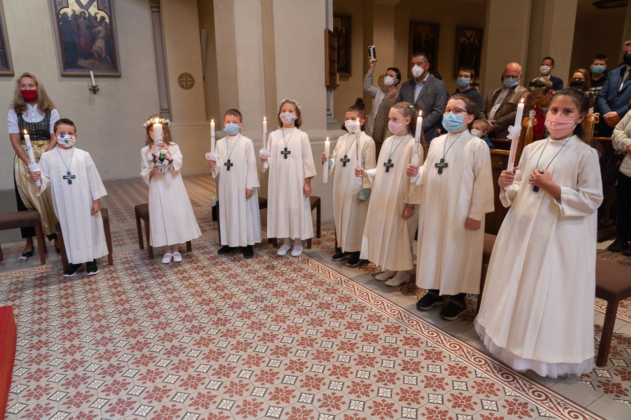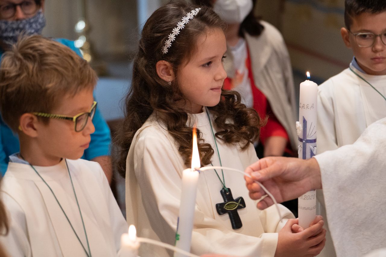 Am Samstag den 19. September konnten wir endlich unsere Erstkommunion feiern. Nach den Vorbereitungsstunden war die Freude darauf schon sehr groß! Vielen Dank an Pfarrer Martin Rupprecht für die feierliche Gestaltung. Als Andenken an die erste Heilige Kommunion nahm jedes Kind ein Kreuz mit nach Hause.