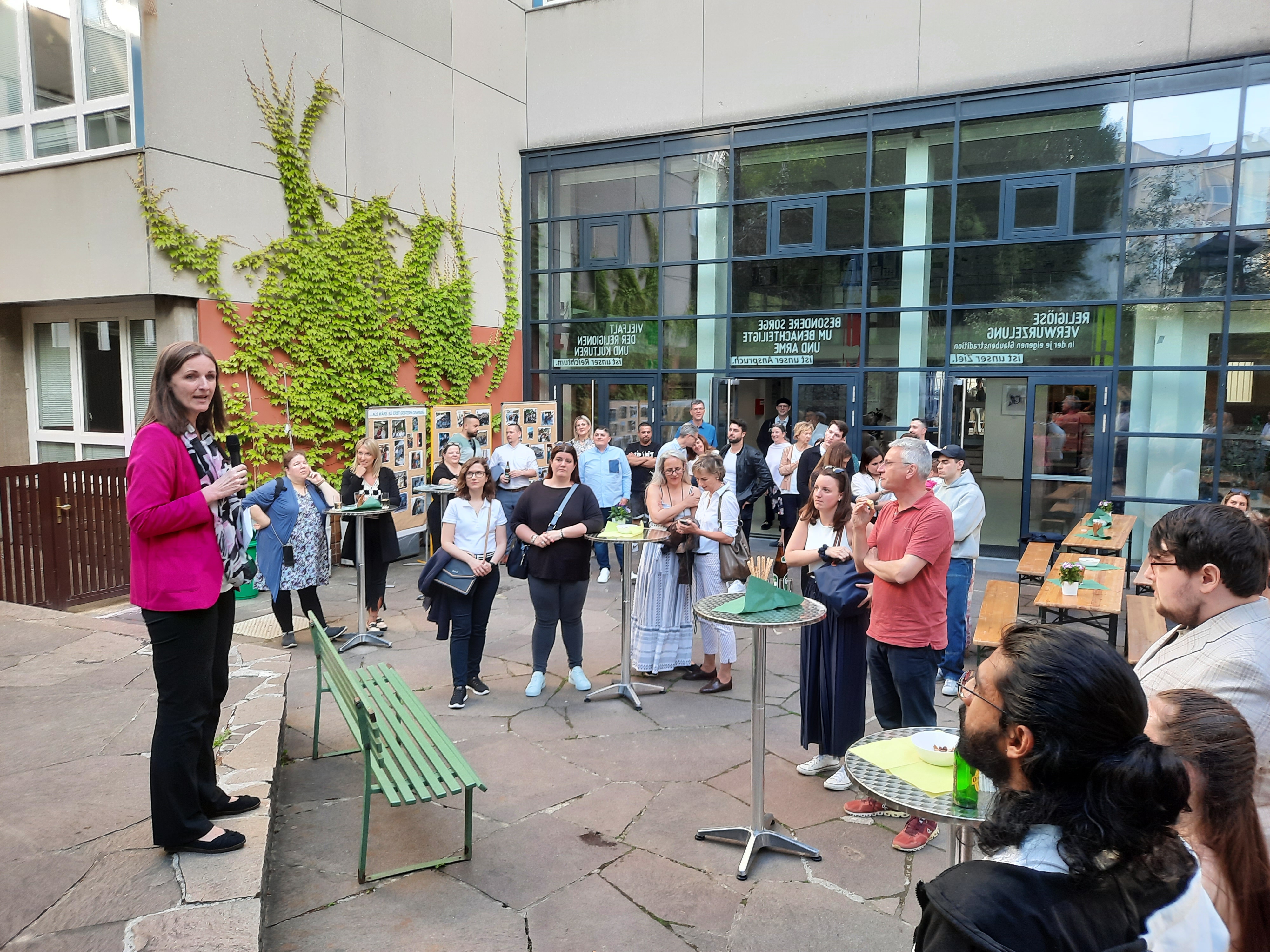 Es war eine generationenumspannende Veranstaltung: Gäste aus dem Abschlussjahr 1974 plauderten mit Lehrkräften und Absolvent:innen der letzten zehn, fünfzehn Jahre, brachten Babys mit, es wurde viel gelacht, umarmt, fotografiert – und versprochen, dass bis zum nächsten Treffen weniger Zeit verstreichen würde. Herzlichen Dank allen, die zu diesem gelungenen Abend beigetragen haben!