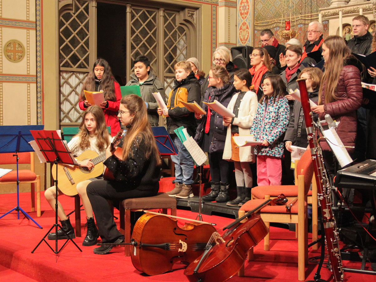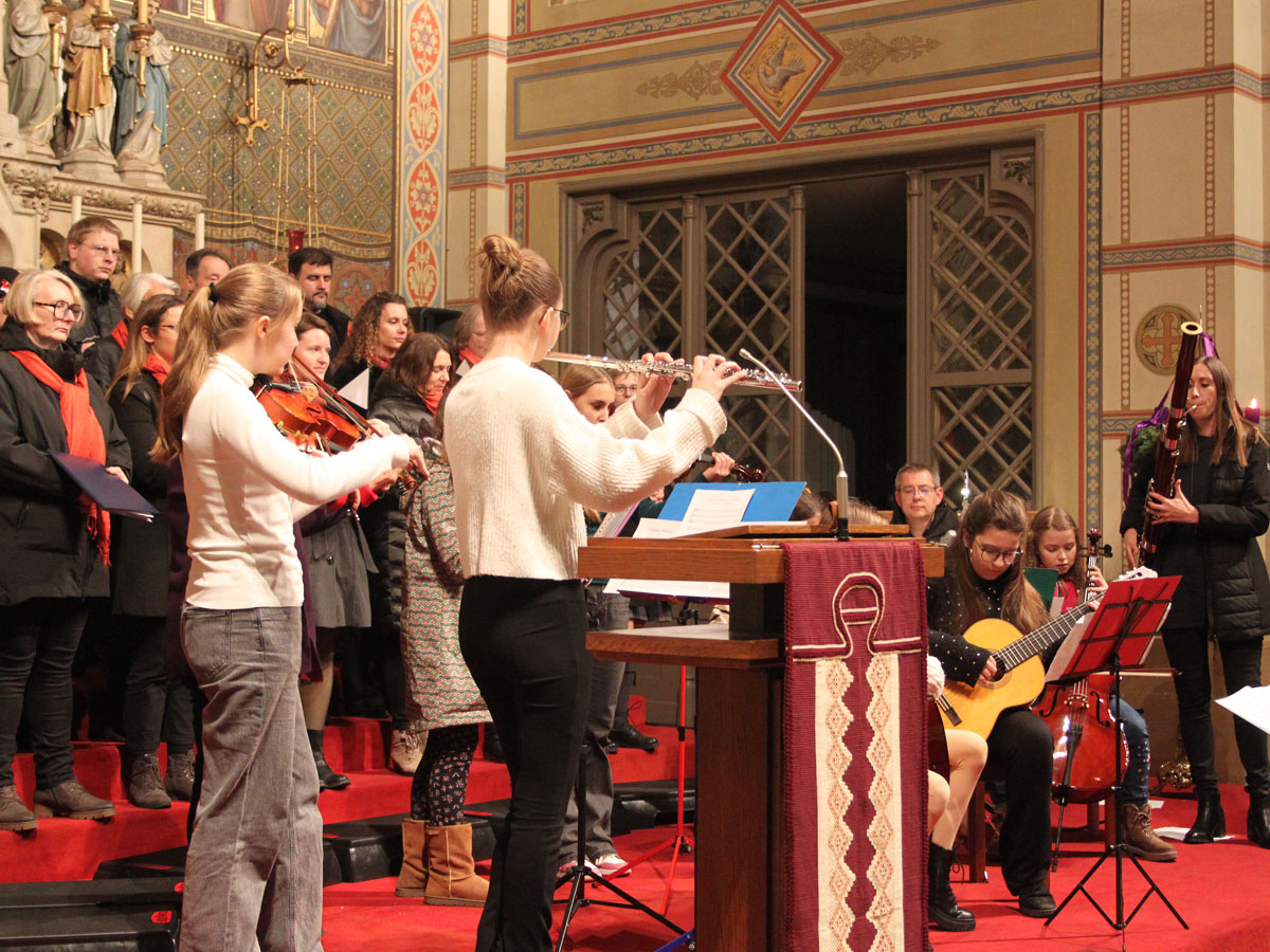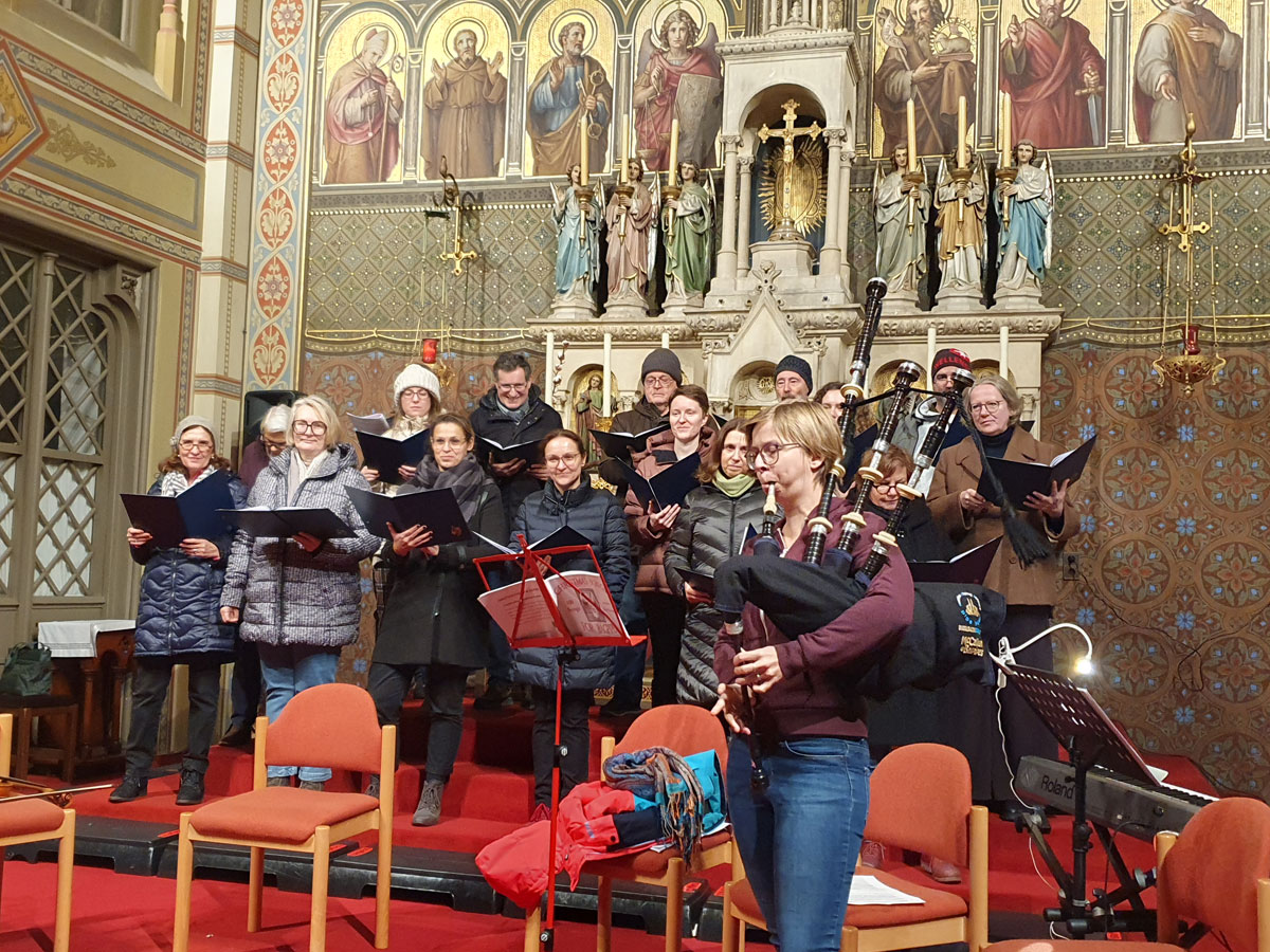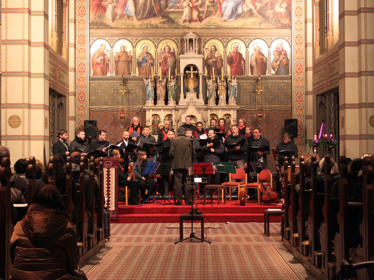 Das diesjährige Adventkonzert der AHS fand - in Unterbrechung der Jahrzehnte langen Tradition - schon am zweiten Donnerstag im Dezember statt, und wieder durften sich die Mitwirkenden über eine volle Kirche freuen. Neben dem Kammerchor Friesgasse, der den größten Teil des Programms bestritt, traten die ChorNetti sowie Instrumentalistinnen aus verschiedenen Klassen in Erscheinung. Als Gäste erfreuten schon zum zweiten Mal 11 „Wiener Sängermänner“ das Publikum. Die besinnliche Stimmung durfte anschließend bei Punsch und Käseweckerln (Vielen Dank an die Küche!) noch nachklingen.