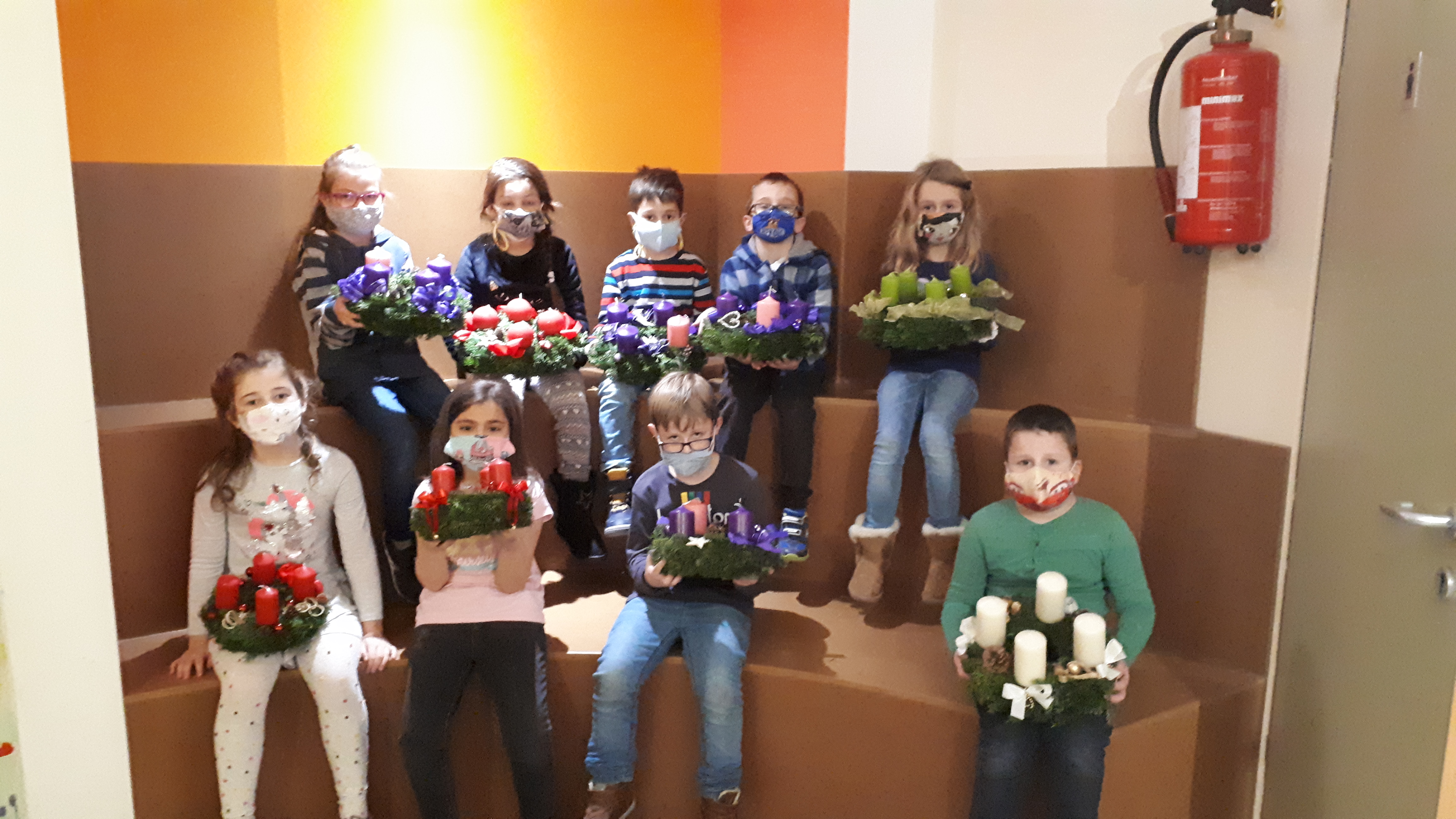 So wie jedes Jahr hat jede Klasse einen schön gestalteten Adventkranz. Heuer haben wir diese Kränze in einer ganz kleinen Feier in der Kapelle gemeinsam gesegnet. Nach einer Lesung aus der Bibel und einem kurzen Segensgebet spielte eine Kollegin stimmungsvoll auf der Gitarre. Beim Aufleuchten der ersten angezündeten Kerze spürten wir alle: Es wird das Licht für uns kommen, und wir wollen Licht für andere sein – trotz allem!
