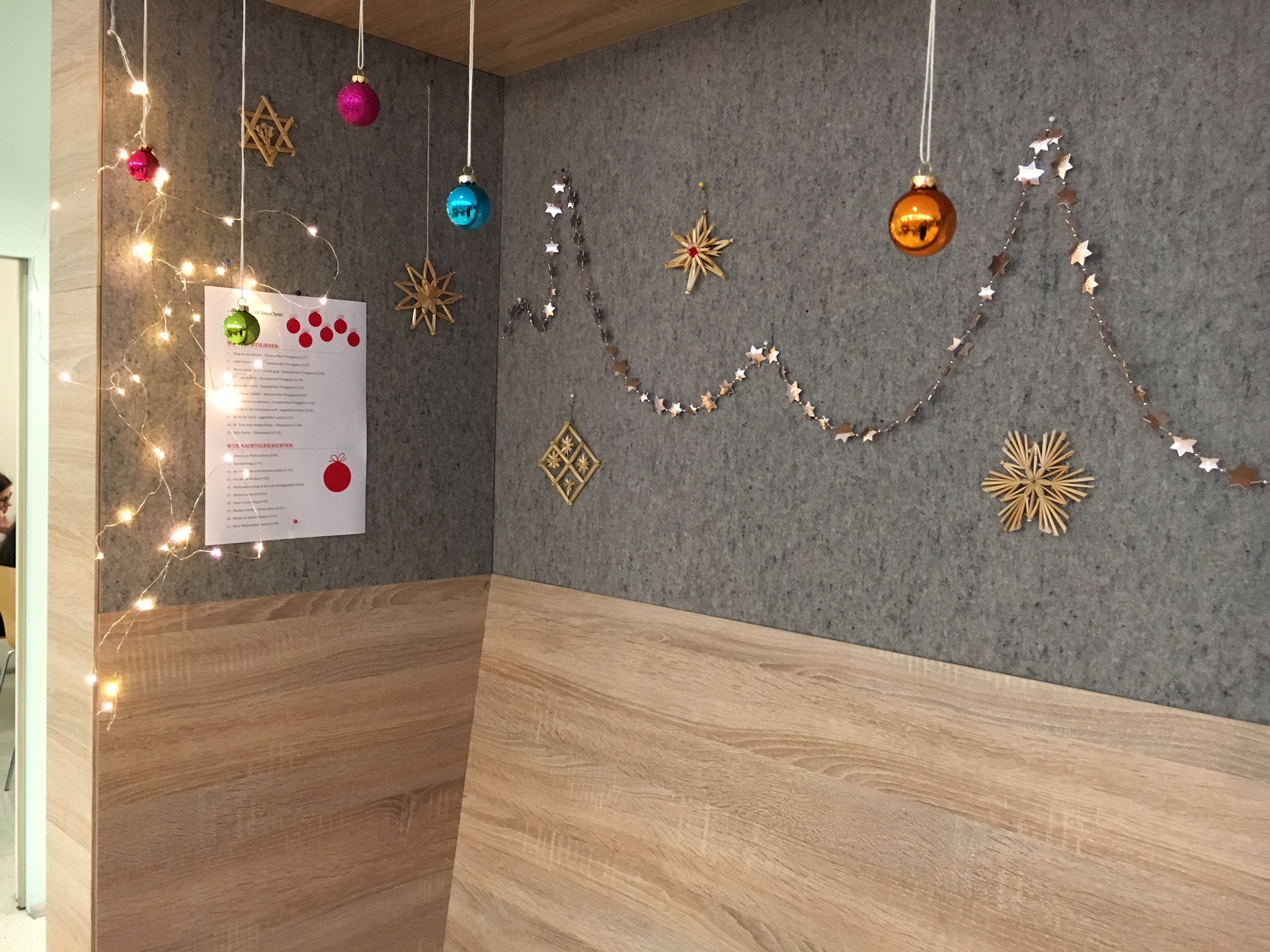Zu finden in der Aula in der Nische „hinter den Pokalen“… einfach den Lichtern folgen!