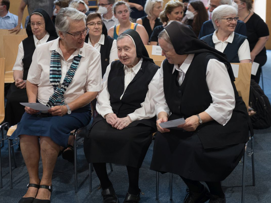 versammelten Schwesterngemeinschaft und den Ehrengästen in einem historischen