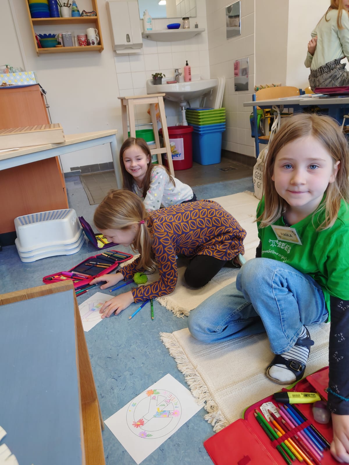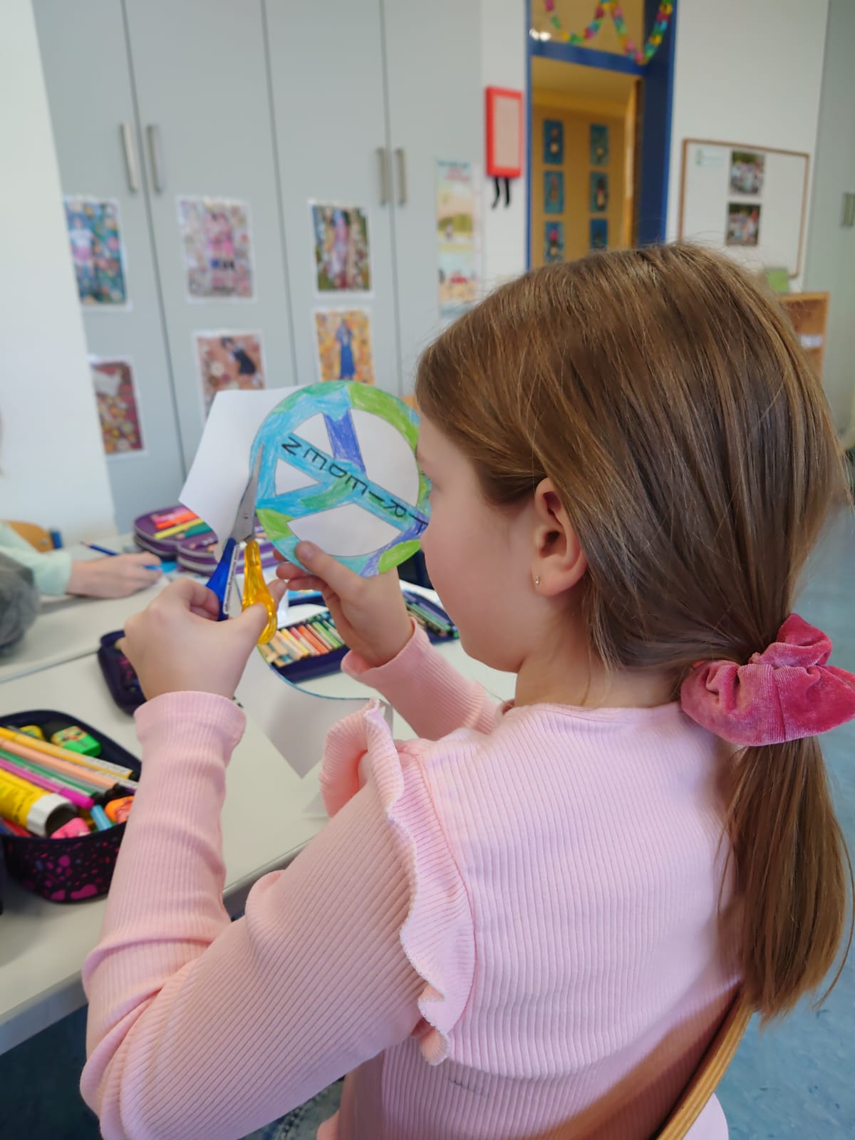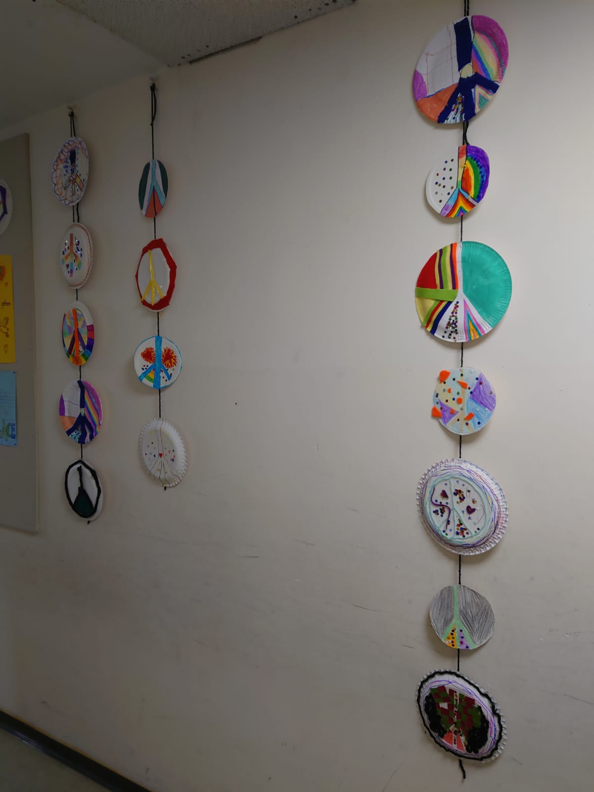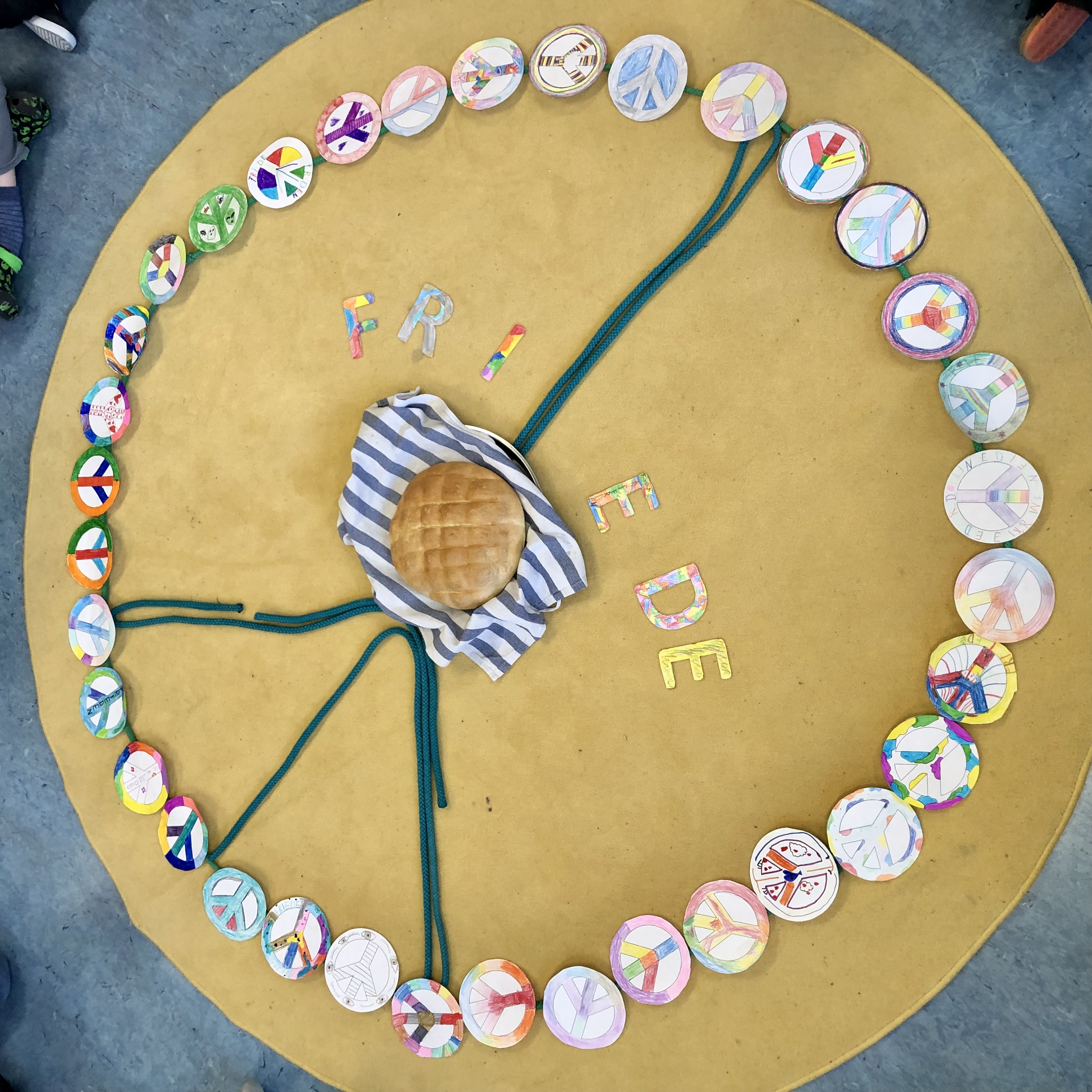 Diese Fragen haben wir uns im Rahmen der Friedenswoche in der Friesgasse mit den Kindern gestellt. Wir haben verschiedene Zeichen des Friedens gesammelt und dabei eines besonders in den Vordergrund gestellt. Im Gespräch wurde den Kindern wieder bewusst, dass der Frieden in vielen kleinen Gesten steckt. Den Namen eines anderen richtig aussprechen, jemanden nett anlächeln, ein Kind zum Spielen auffordern oder die Jause teilen. Zum Glück gibt es bei uns viele Kinder, die das schon gut können. Auch solche, die Frieden stiften können! Wir haben auch das Friedensband in unserem Schulhaus genauer betrachtet. Finden wir das Wort „Frieden“ in dieser Sprache? In dieser Woche wurde uns allen wieder klar, wie wichtig Frieden für uns alle ist und wir im Kleinen damit beginnen können und müssen.