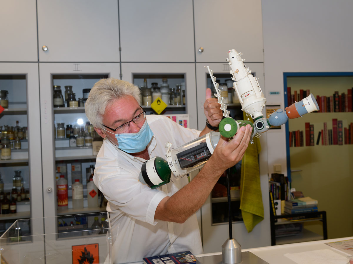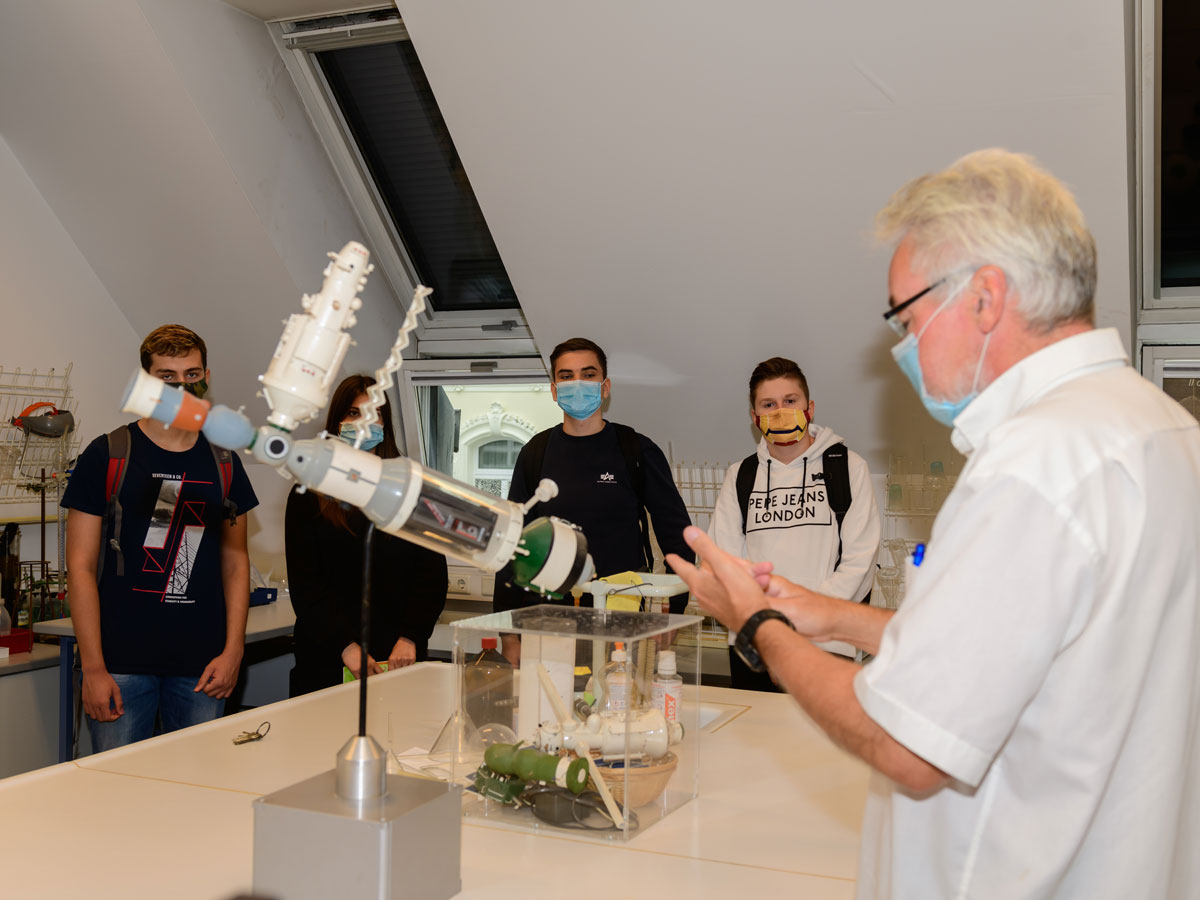 Ein Modell der russischen Raumstation MIR aus dem Jahre 1991 diente zum fächerübergreifenden Unterricht in Russisch, Physik und Chemie aus verschiedenen Klassen der AHS-Oberstufe Friesgasse.