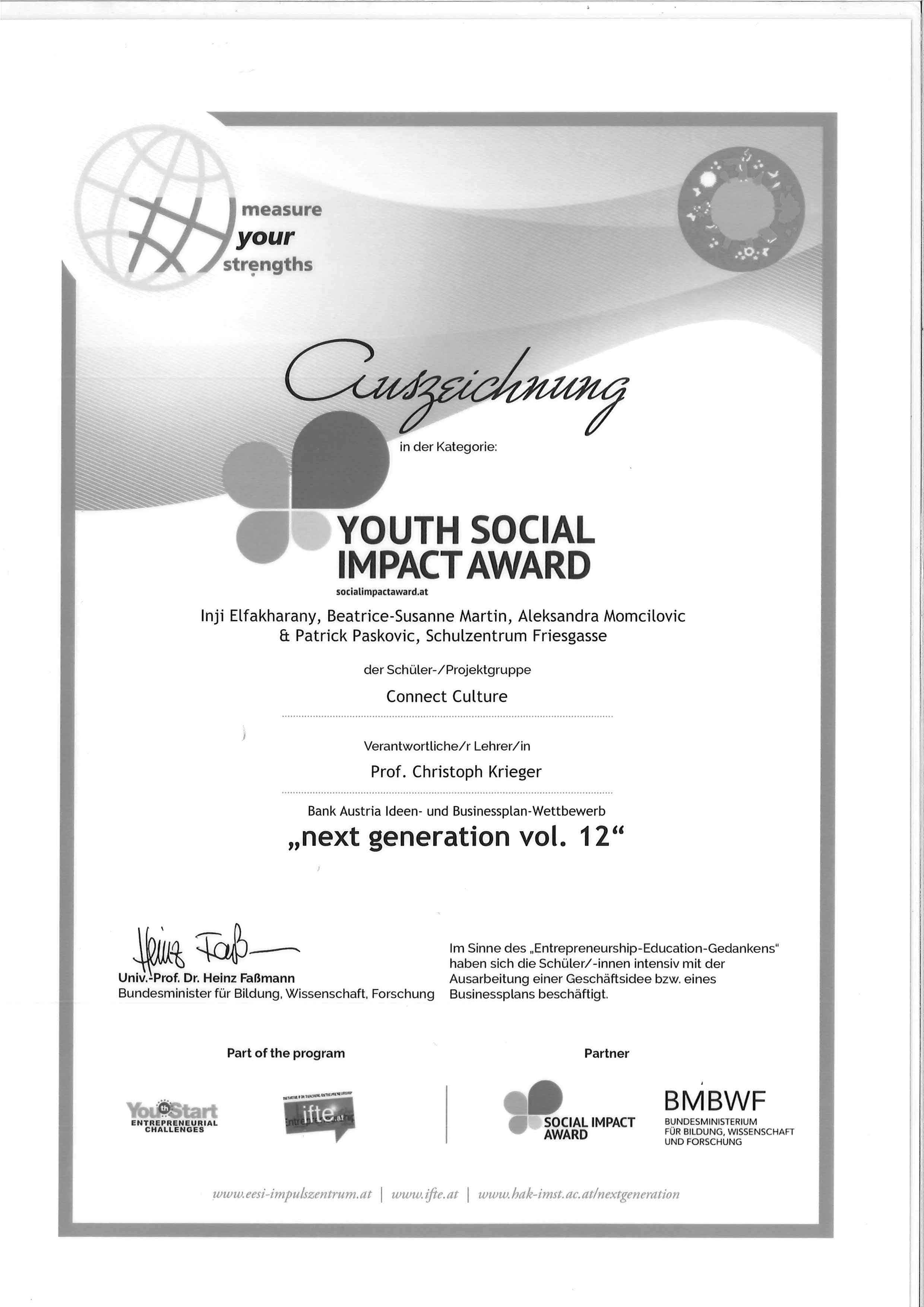 Wir gratulieren Inji Elfakharany, Aleksandra Momcilovic und Patrick Paskovic zum Gewinn des "YOUTH SOCIAL IMPACT AWARD" beim diesjährigen Bank Austria Businessplanwettbewerb!