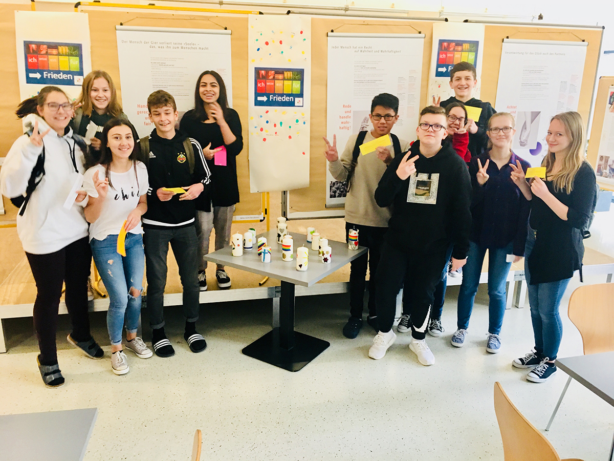 (der Stiftung Weltethos), die in der Aula gezeigt wurde, einen guten Anknüpfungspunkt zur Auseinandersetzung mit dem Thema friedliches Zusammenleben der Religionen und Kulturen. Die Ausstellung wurde von zahlreichen Schulklassen im Rahmen ihres Unterrichts besucht, aber auch wartende Eltern und LehrerInnen zeigten ein reges Interesse.