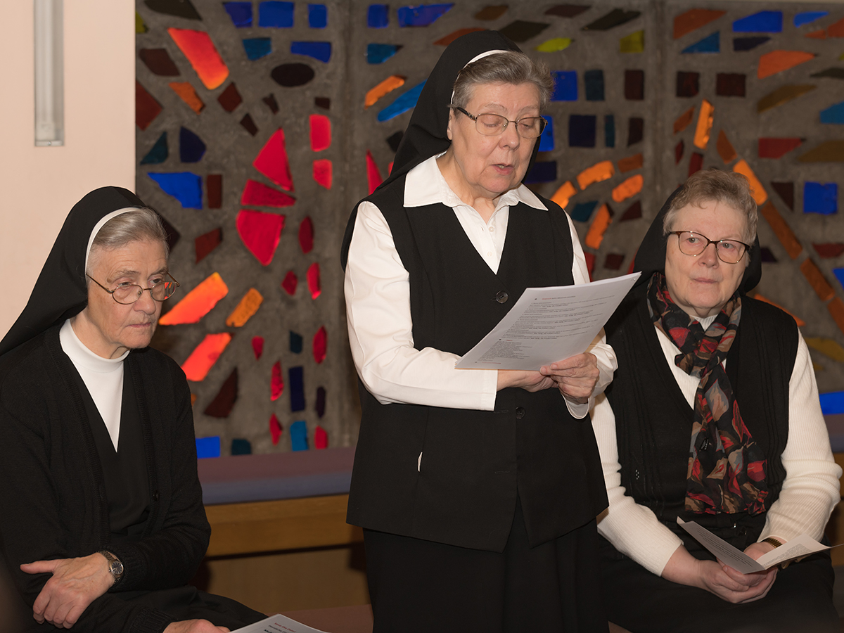 Im stimmungsvollen Rahmen der Schulkapelle nahmen zahlreiche Lehrer:innen, ausgewählte Schüler:innen, die Direktor:innen und SSND Schwestern aktiv teil. Heuer standen die Seligpreisungen der Bergpredigt im Mittelpunkt der Gebetsbeiträge, die als markante Wegweiser zum Frieden hervorgehoben wurden. Die stimmungsvollen Lieder der Klezmer Band der AHS gaben der Feier ihr besonderes Gepräge.