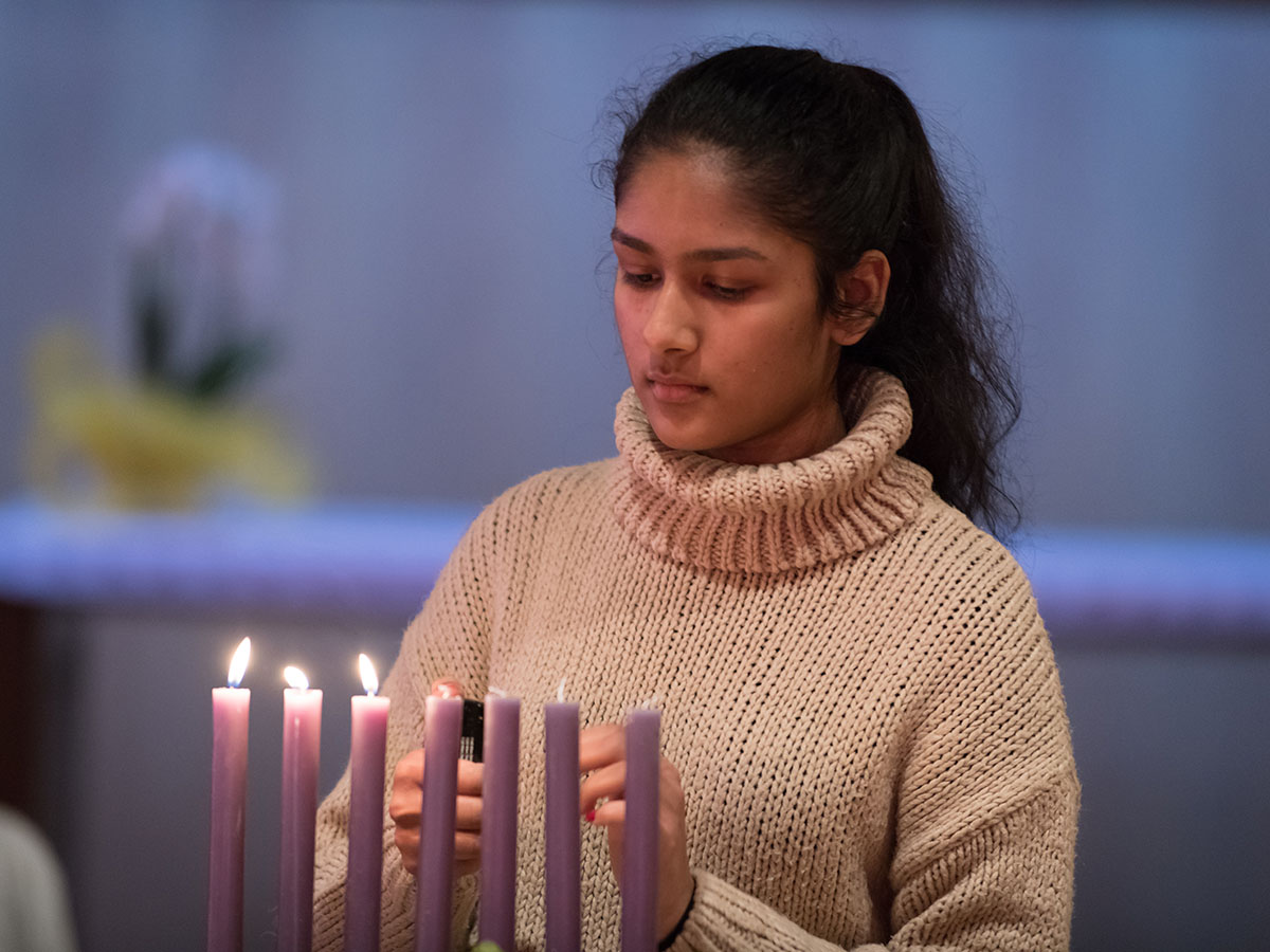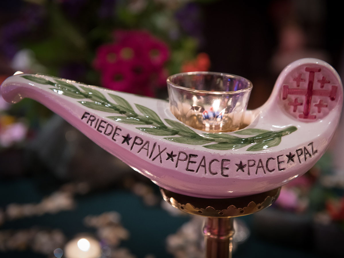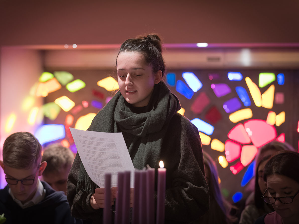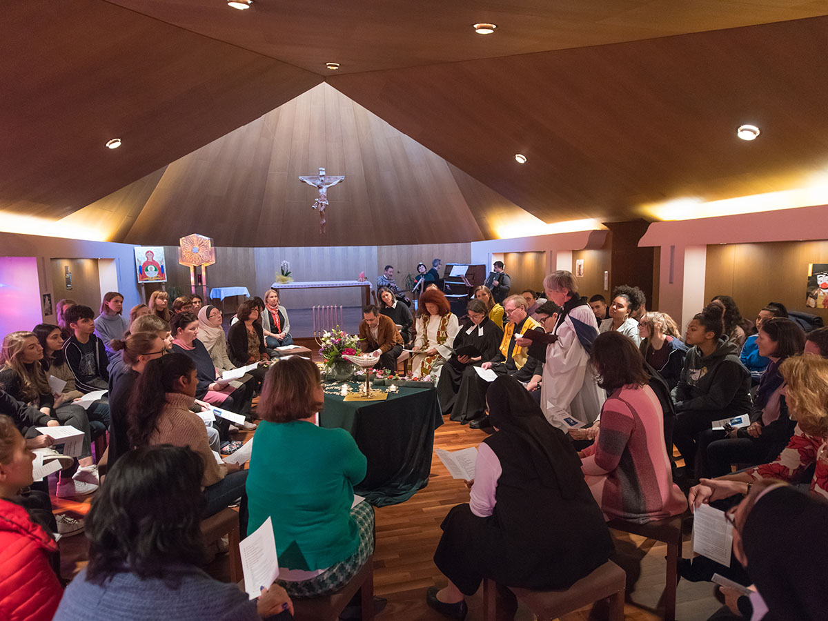Im stimmungsvollen Rahmen der Schulkapelle nahmen SSND Schwestern, die Direktor*innen und Lehrer*innen sowie ausgewählte Schüler*innen aus allen Schulformen teil. Die einzelnen Religionsvertreter*innen trugen mit ihren Gebeten dazu bei, das diesjährige Motto „WIR – in Beziehung“ inhaltlich zu bereichern. Dem gemeinsamen Friedensanliegen, der Achtung voreinander und der Verbundenheit untereinander wurde dabei sichtbar Raum gegeben. Verbindendes Element in der Mitte des Altartisches war wie immer die Friedenslampe aus Jerusalem. Die stimmungsvollen Klezmer-Lieder der Lehrer*innen-Band des Schulzentrums gaben der Feier das ganz besondere Gepräge.