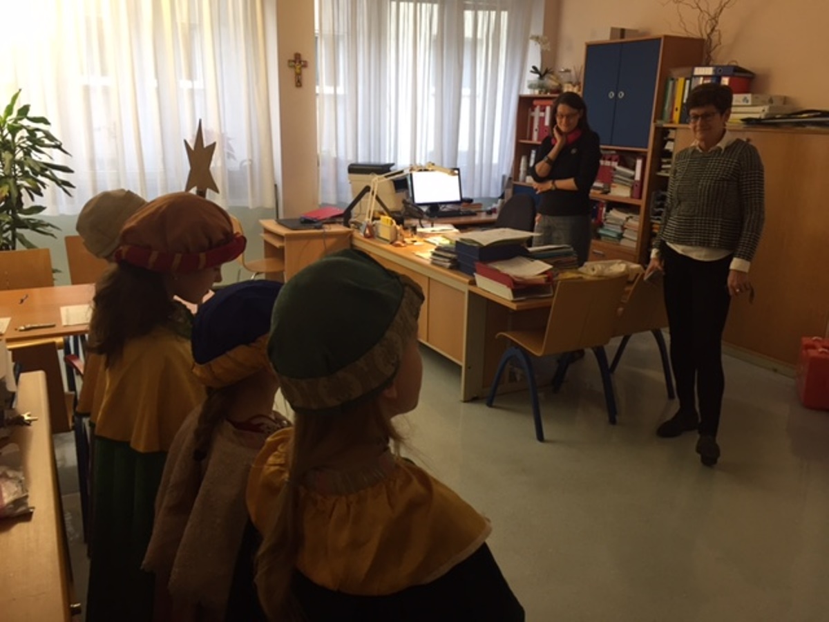 Wie jedes Jahr unterstützt das Schulzentrum im Rahmen der Dreikönigsaktion Projekte, die Bildung fördern. Am 10. Jänner besuchten wieder Kinder unserer Volksschule als Sternsinger alle Klassen unseres Schulzentrums, den Kindergarten, die Lehrer/innenzimmer, die Schulküche und die Verwaltungsräume. Alle Menschen freuten sich über den Besuch der Sternsinger, besonders auch unsere Schwestern im Konvent.