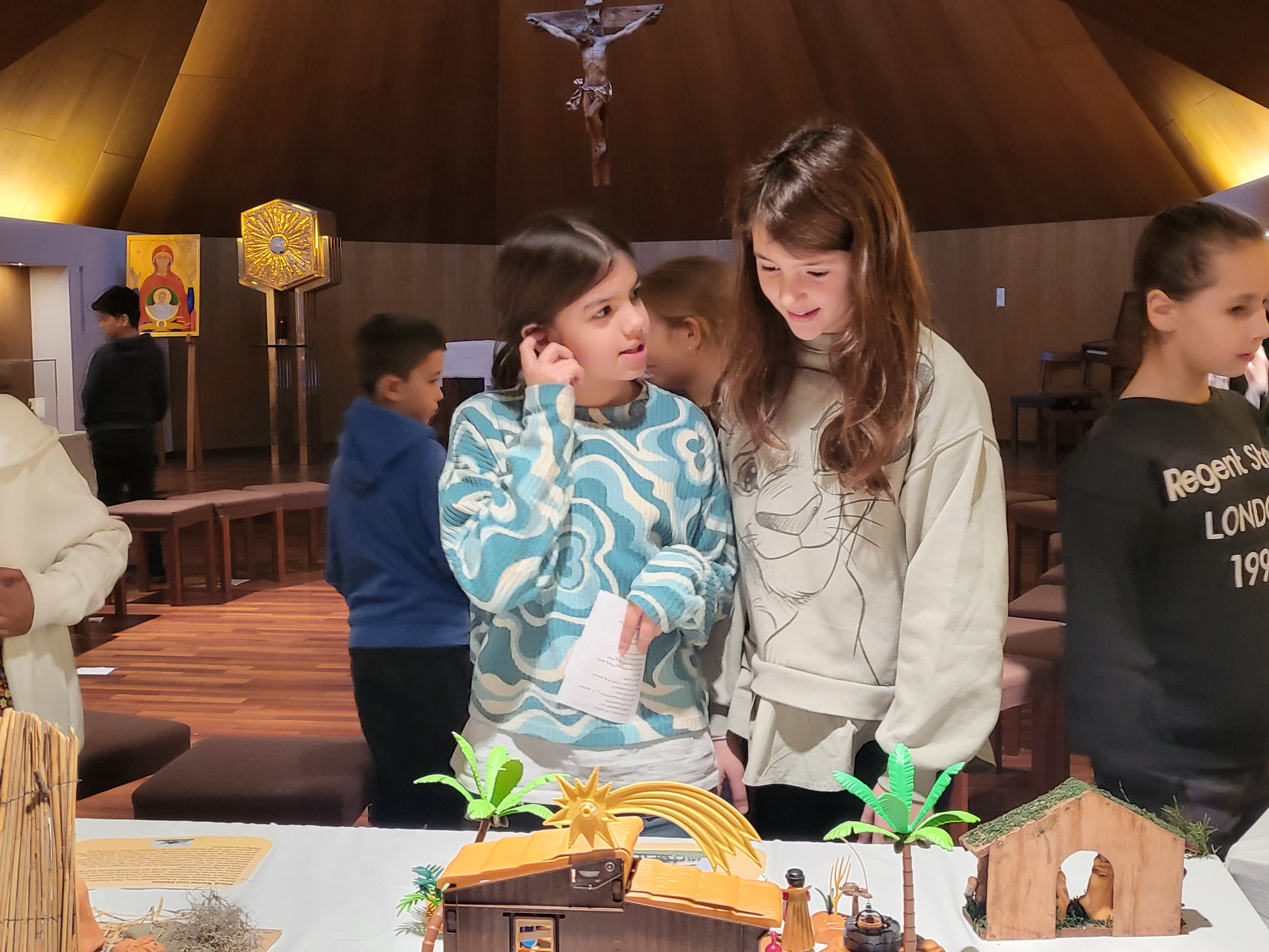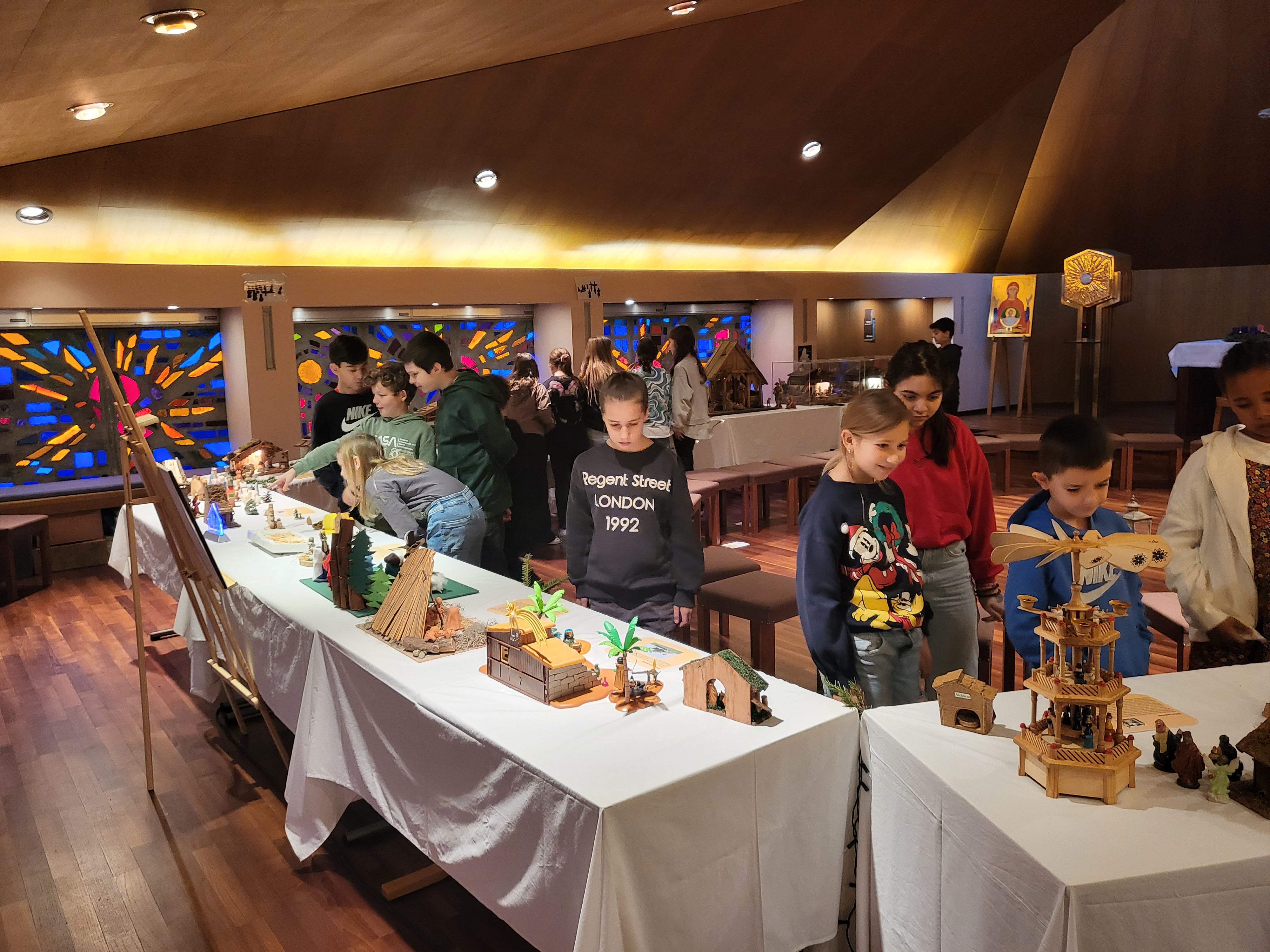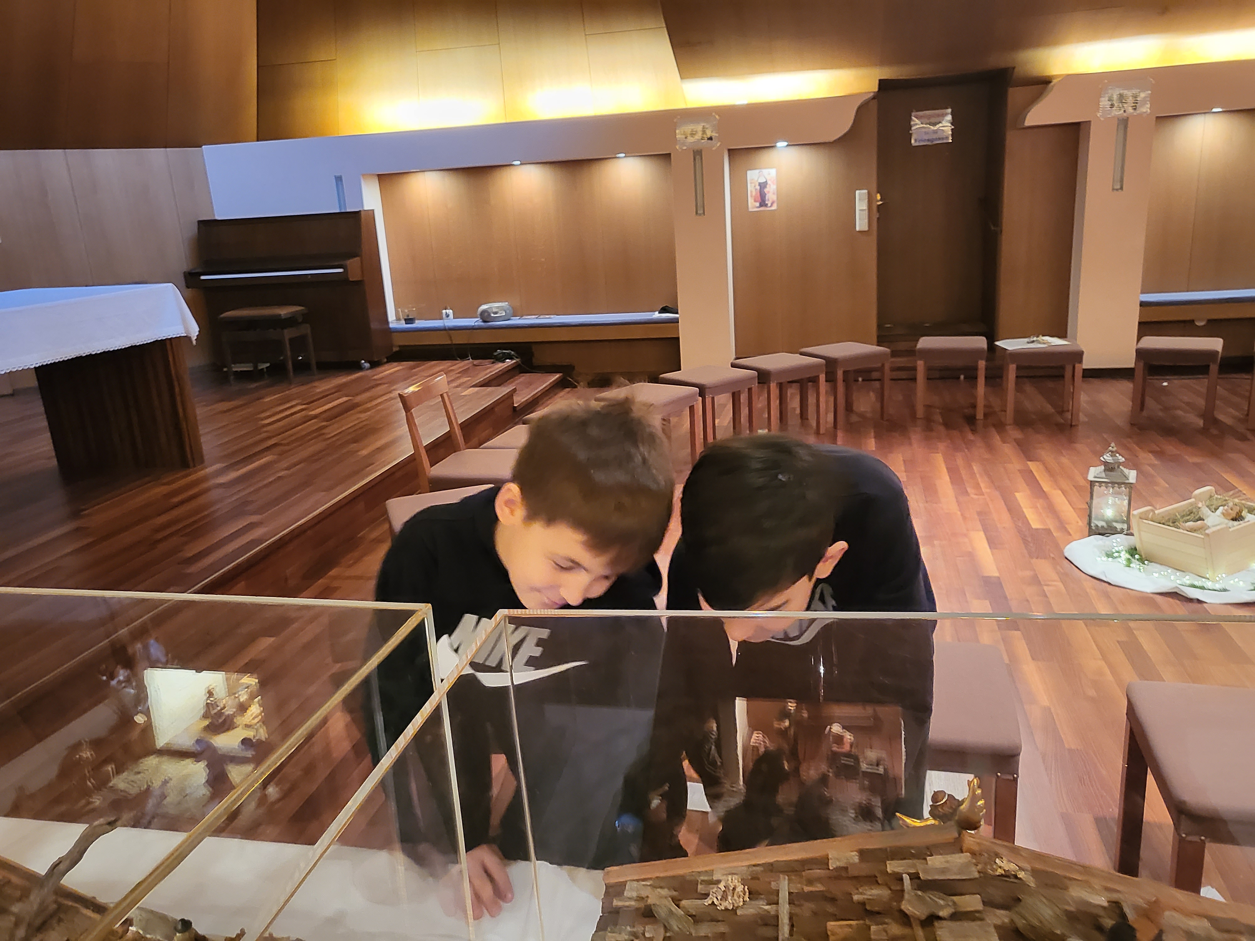 Alle Jahre wieder … ist es Brauch, in vielen Familien zu Weihnachten eine Krippe aufzustellen. Wie schaut eine Krippe aus? In unserer Krippenausstellung konnte man viele unterschiedliche Modelle sehen. Kunstvoll geschnitzte Figuren, eine Playmobilkrippe, selbst gebastelte Modelle, … die Auswahl war sehr vielseitig und interessant. In einer kleinen Andacht hörten unsere Kinder die Geschichte: “Die schönste Krippe”. Sie erzählt von einer Herbergssuche in der heutigen Zeit und wie eine neue Heimat gefunden wurde. NMS und HAK Aufbaulehrgang verlegten ihren Religionsunterricht in die Kapelle und machten sich auf die Suche nach der Geschichte der Herbergssuche in der Bibel.