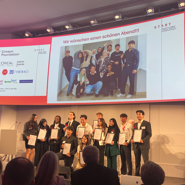 Am 17.10.2024 erhielten 8 junge Frauen und 7 junge Männer im Alter zwischen 17 und 20 Jahren im Rahmen einer sehr motivierenden und berührenden Feier ihr START Stipendium, das von START-Wien, einer Initiative der Crespo Foundation vergeben wird. Das START Stipdendium ist ein Stipendium für engagierte Schülerinnen und Schüler mit Migrationshintergrund.