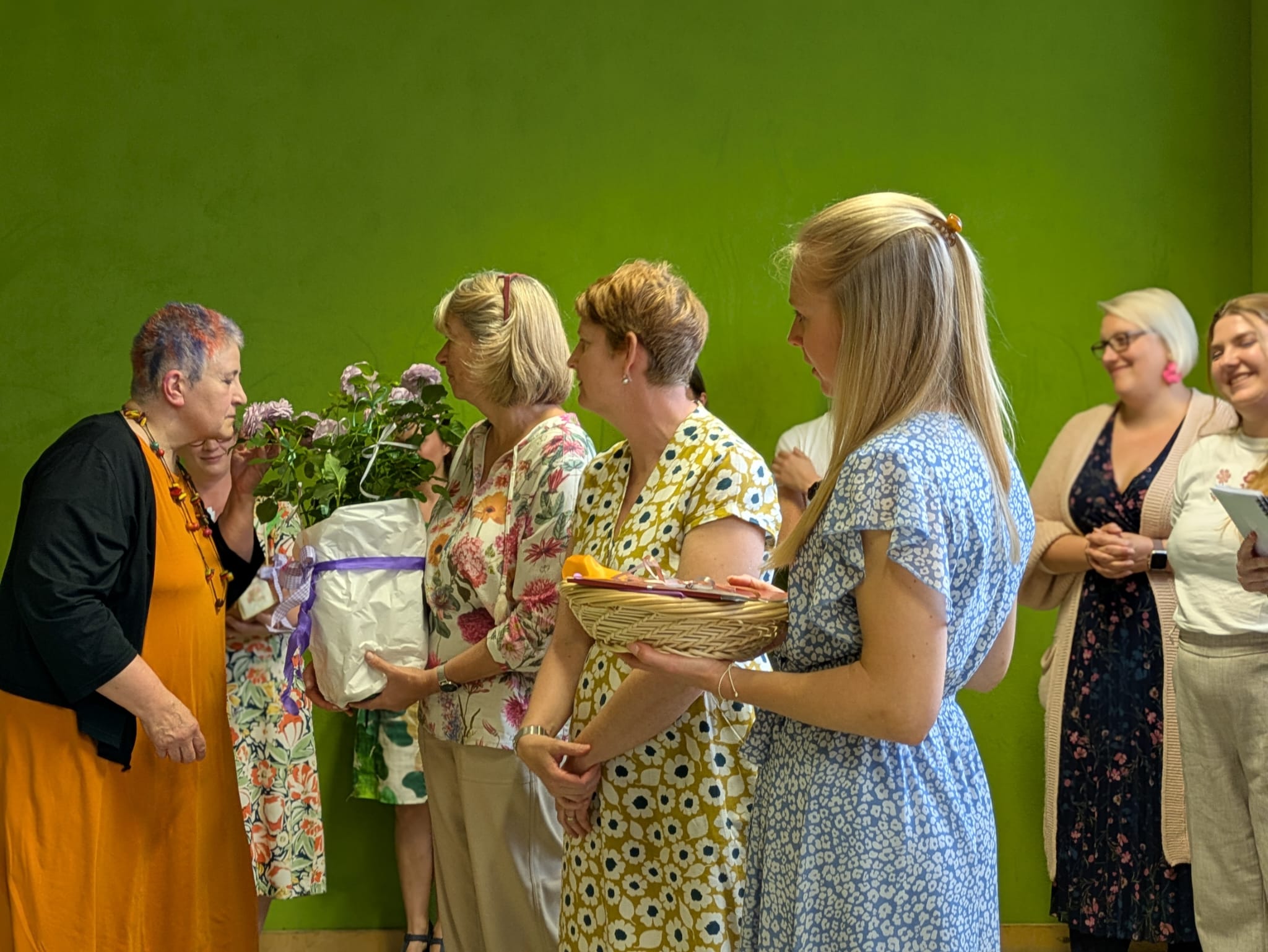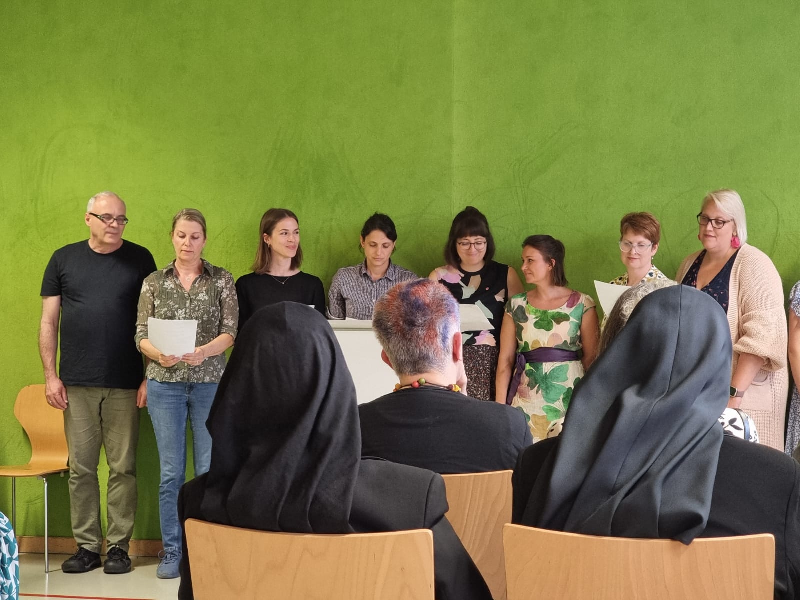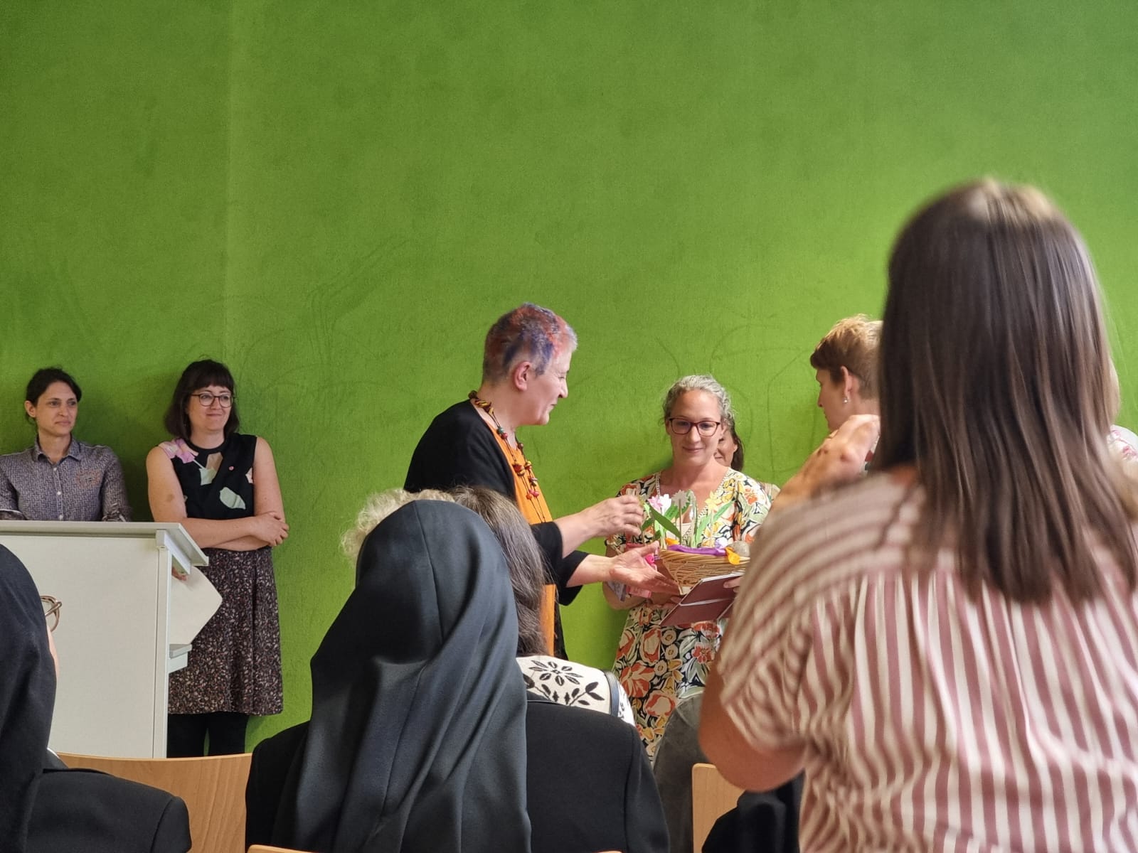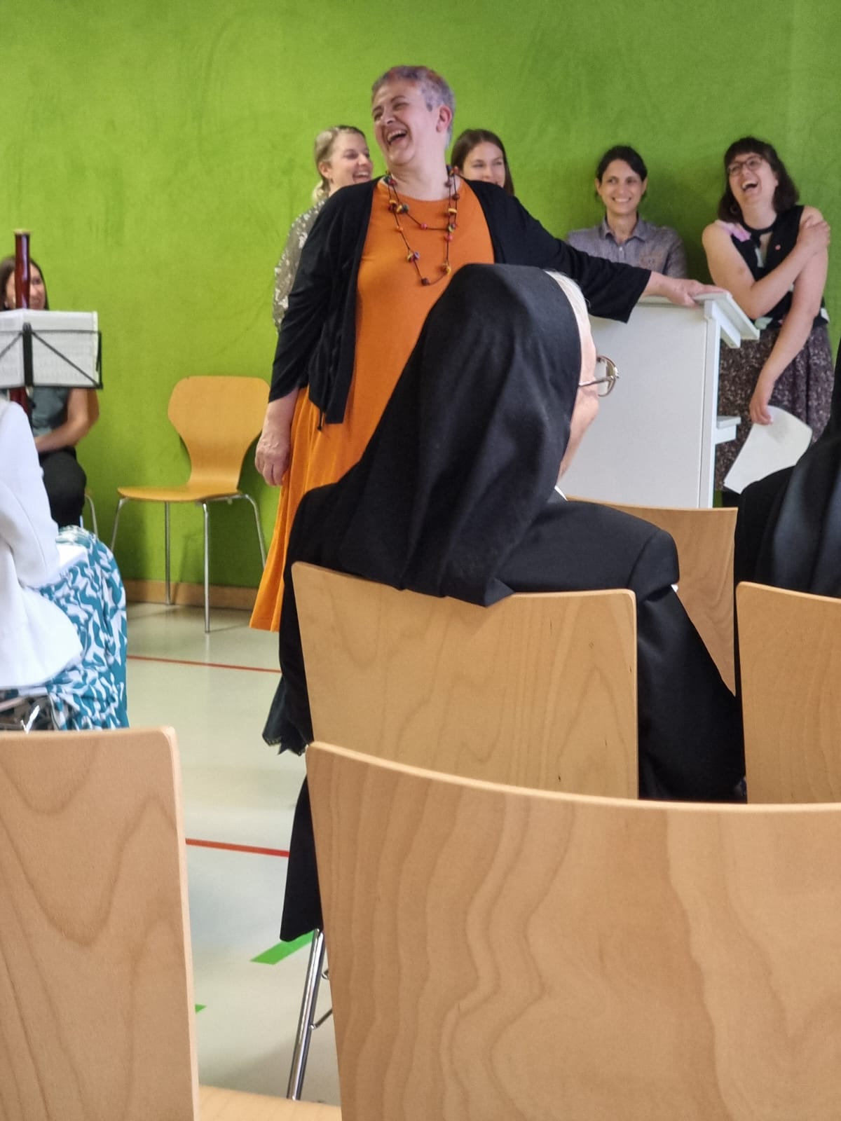 Heute haben wir - Kinder,Eltern, LehrerInnen, Schulschwestern, die Schulerhalter und viele andere WegbegleiterInnen - “Danke!” gesagt. Unglaubliche 46 Jahre lang war unsere Kollegin,Freundin und Direktorin Ruth Bulant in der Friesgasse tätig. Ihr verdanken wir viele Innovationen, neue Ideen und Anregungen. Montessori-Pädagpgik, Therapiehunde in der Klasse,Motopädagogik, Theaterpädagogik, offenes Arbeiten, Gewaltfreie Kommunikation und Mitspracherecht von Kindern sind nur einige Punkte. Aber vor allem ihr Gespür für die Kinder hat ihre Arbeit so wertvoll gemacht!