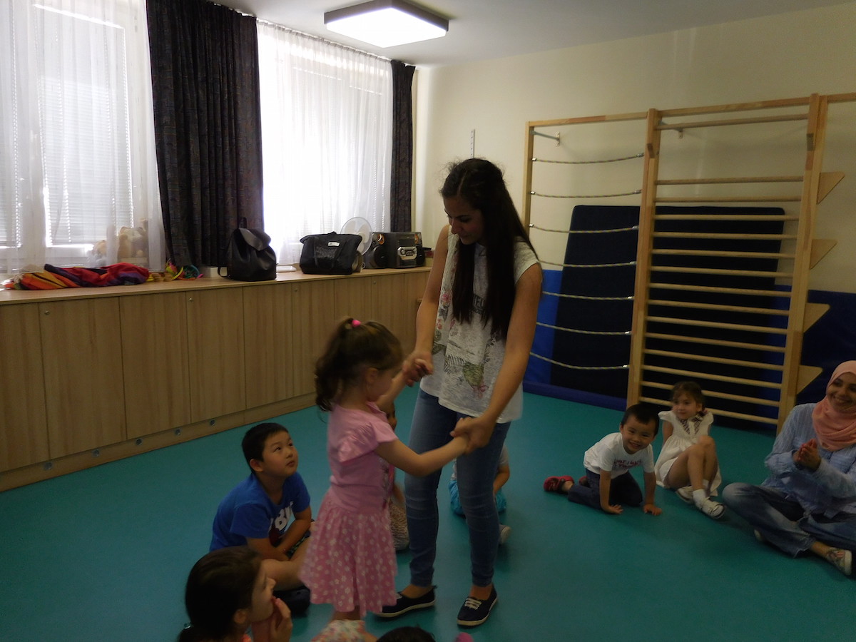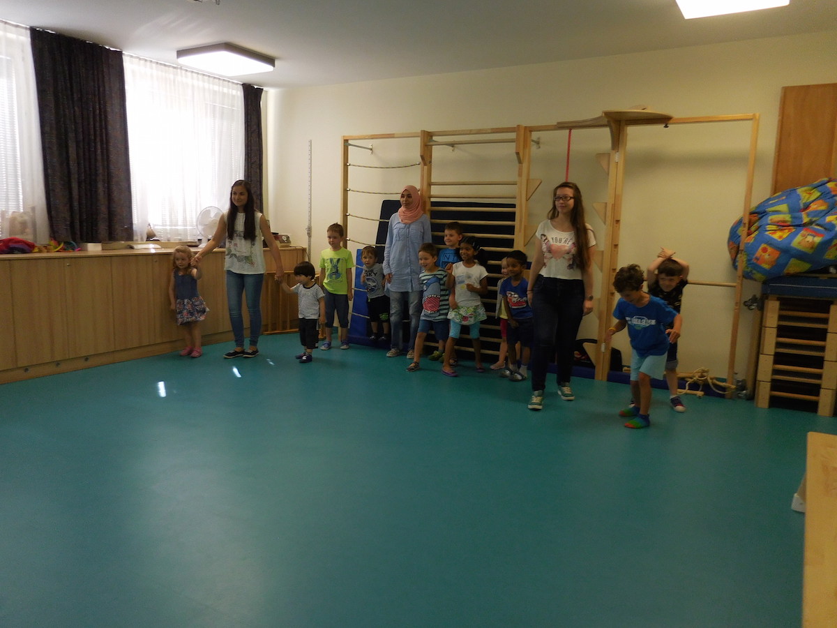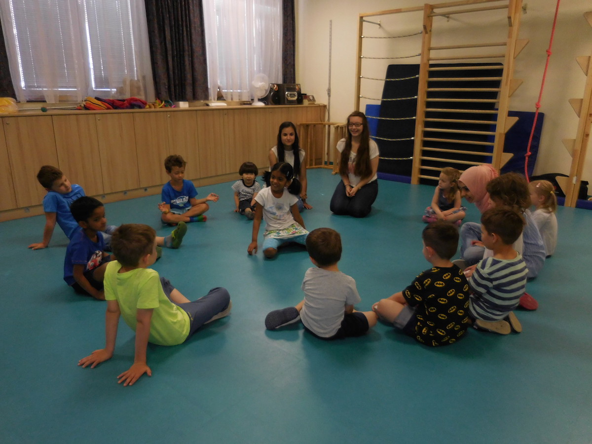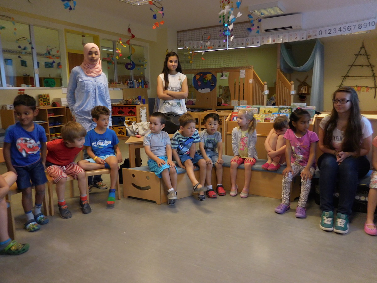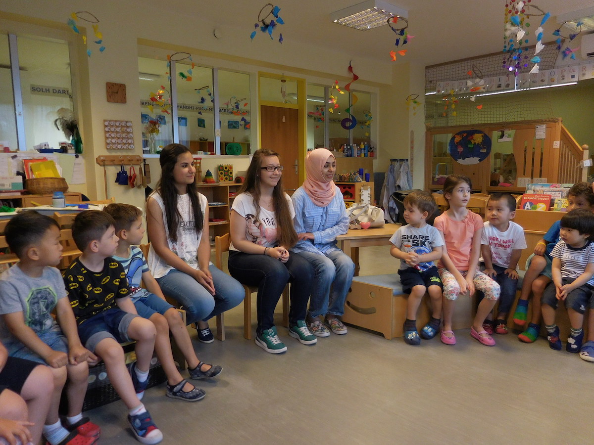 Schülerinnen von der Handelsschule besuchten uns und spielten mit den Kindern.