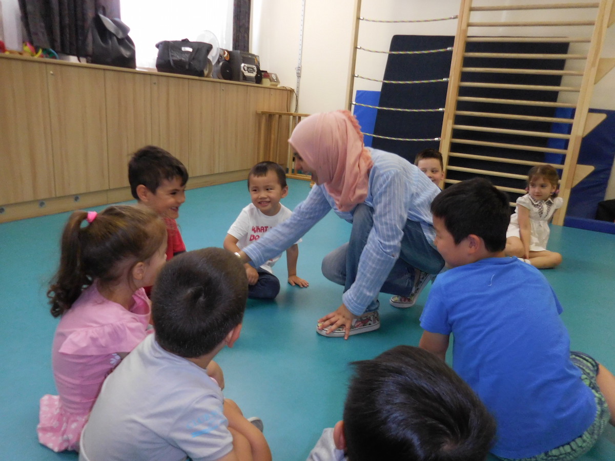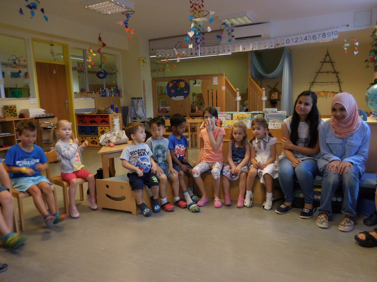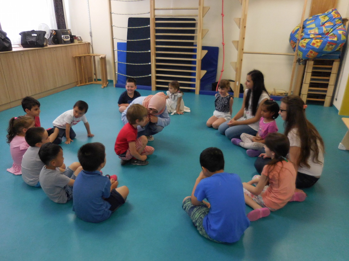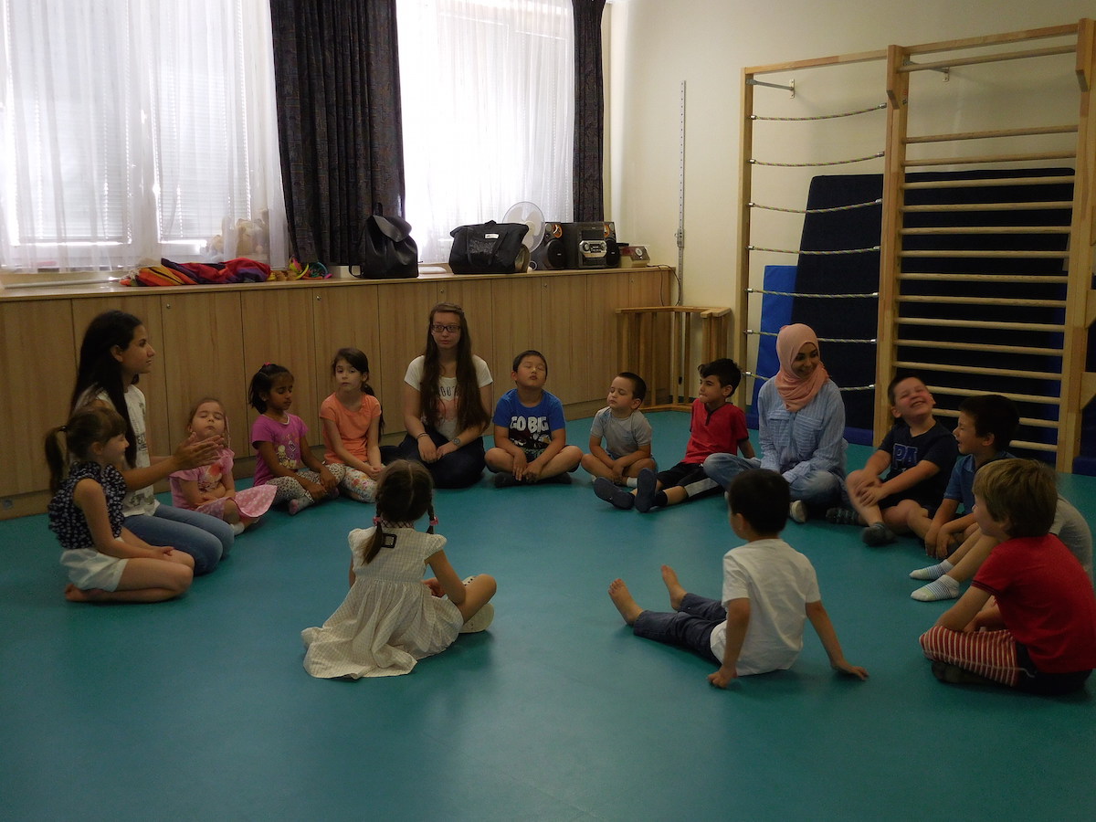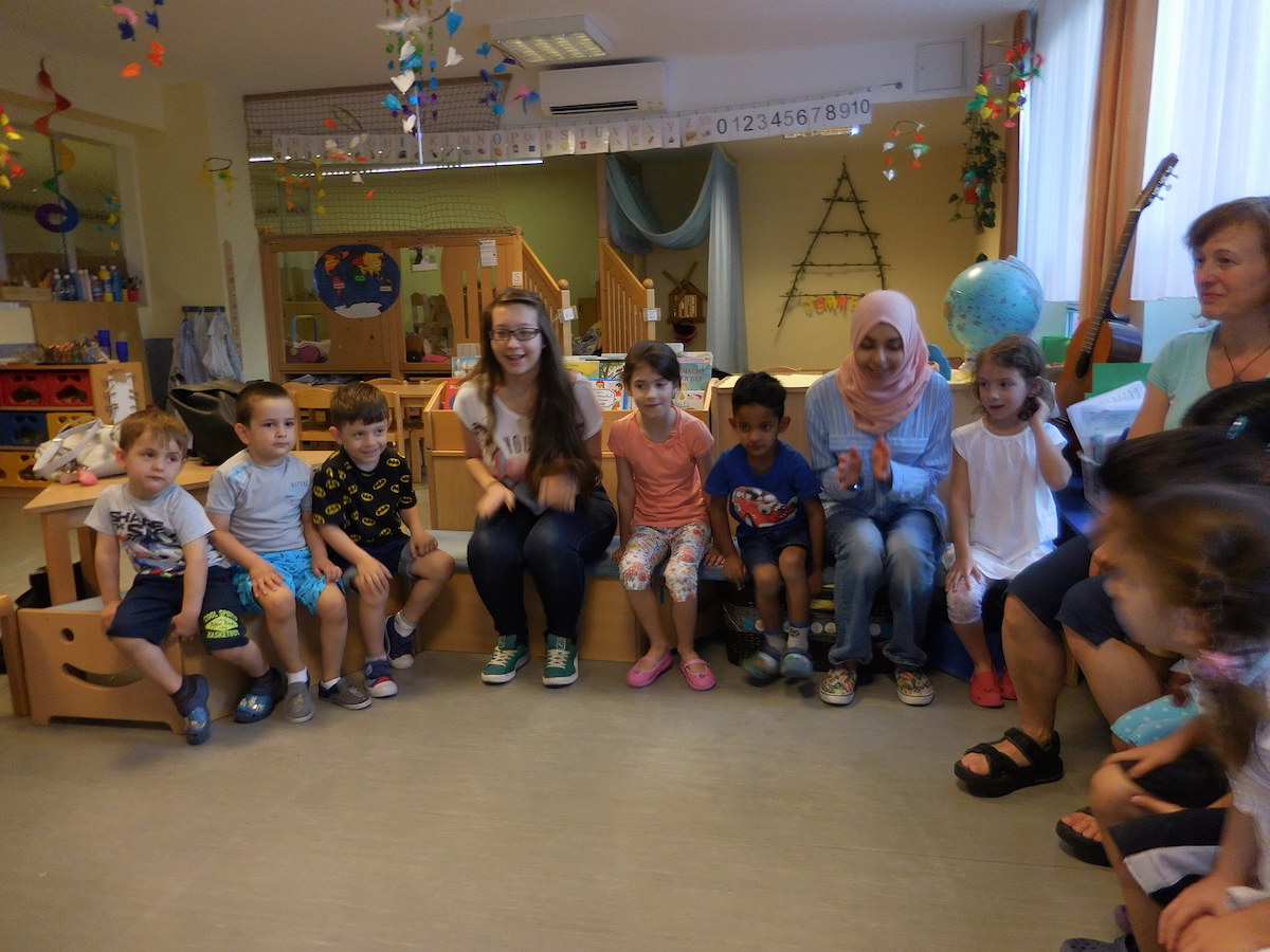 Schülerinnen von der Handelsschule besuchten uns und spielten mit den Kindern.