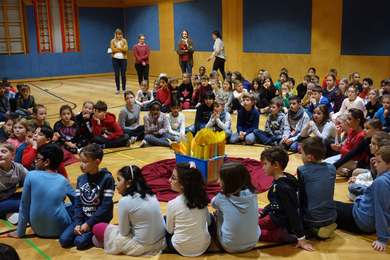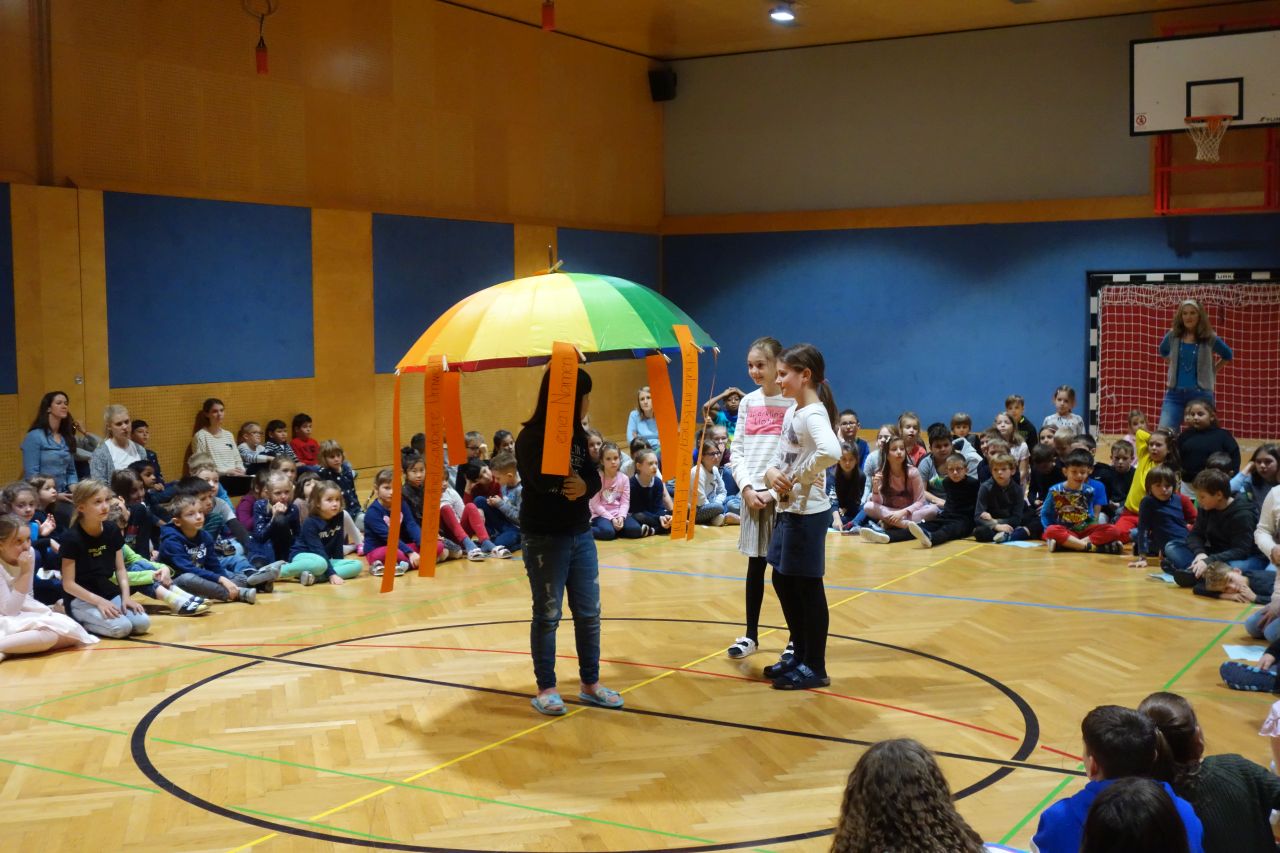 In den 30 Tagen vor dem 20. November 2019 beschäftigten wir uns alle mit dem Thema Kinderrechte. Das Ziel des Projektes war das Kennen der 10 wichtigsten Kinderrechte, denn nur wer seine Rechte kennt, kann sie auch einfordern. Dadurch wollten wir die SchülerInnen sensibilisieren, sowohl für die eigenen Gefühle, Bedürfnisse und Rechte, als auch für die der anderen Kinder. In der Arbeit mit der Friedenstreppe lernten Kinder selbstständig Konflikte zu lösen.