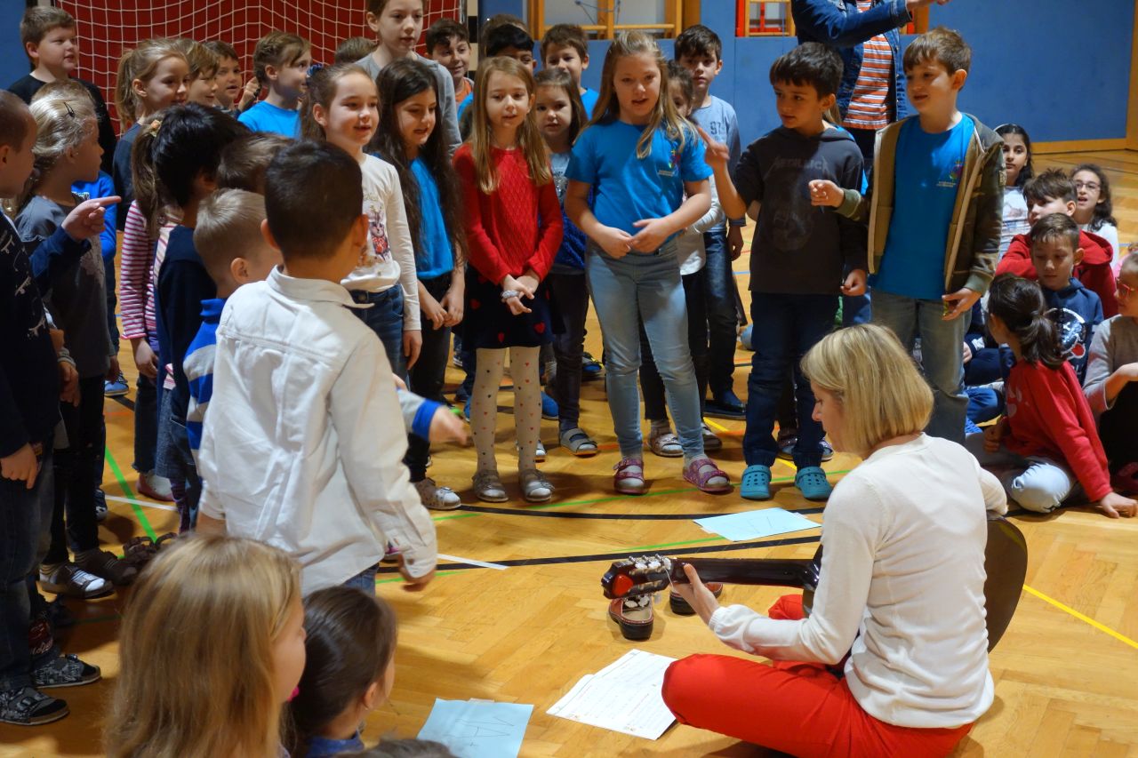 Es gab Einführungsworkshops für jeweils 2 Klassen, Ausbildung von FriedensmediatorInnen, Infostationen im Schulhaus und eine vertiefende Auseinandersetzung mit dem Thema in den Klassen. Sichtbar ist die wachsende Ausstellung von Bildern in den Gängen der Volksschule. Auch für die Eltern gab es Workshops, in denen sich interessante Diskussionen zum Thema Kinderrechte und Erziehung entwickelten.