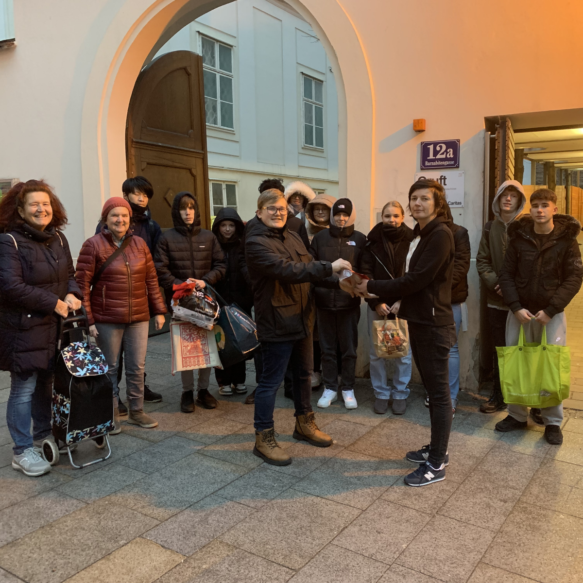 Am letzten Schultag vor den Ferien übergab die Religionsgruppe 2ACS in Begleitung von Prof. Henökl und Prof. Schiemel die im Advent gesammelten Spenden an die "Gruft". Neben einer Geldspende in Höhe von 245€ brachten die Schüler:innen auch verschiedene Sachspenden mit.