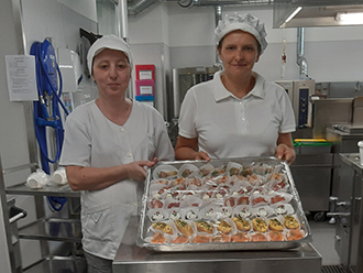 Unsere Küche versorgt während des Schuljahres von Montag bis Freitag rund 400 Personen mit frisch zubereitetem Mittagessen.