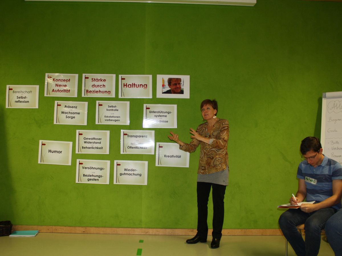 Verantwortliche aus den verschiedensten Bereichen im Haus setzten sich mit ihrer gemeinsamen Haltung im Umgang mit Kindern- und Jugendlichen auseinander, was einen wichtigen Beitrag zur Gewaltprävention darstellt. Denn alle Erwachsene am Schulstandort sollen den Kindern und Jugendlichen klar machen: Wir dulden in unserer Schule/ im Schulzentrum keine Gewalt. Gewaltvorfälle werden konsequent angesprochen und Gegenmaßnahmen gemeinsam ergriffen, weil wir bereit sind zu reflektieren, uns selbst zu kontrollieren, in Netzwerken und Bündnissen gemeinsam zu arbeiten, beharrlich gewaltfrei zu arbeiten und Möglichkeiten der Wiedergutmachung anzubieten.