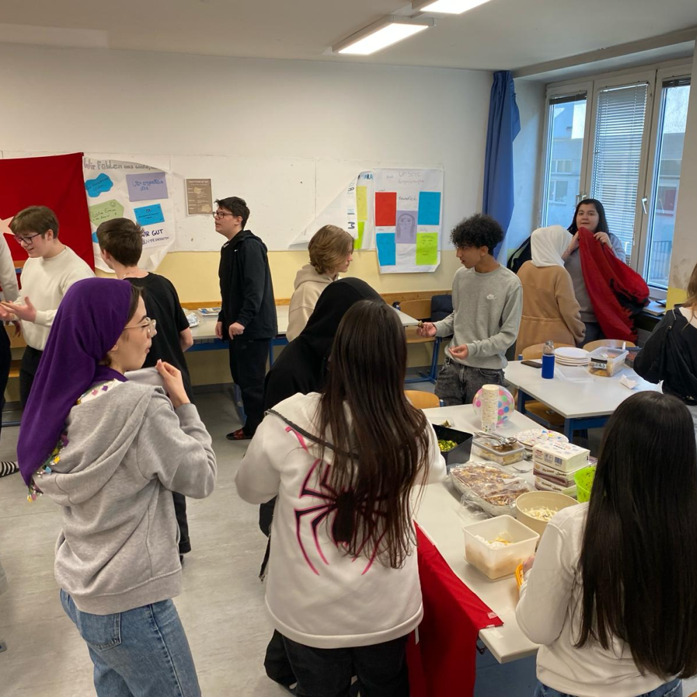 Viele Schülerinnen und Schüler nutzten am 30. Jänner die Gelegenheit, ihren Klassenkameradinnen und -kameraden Interessantes und Köstliches aus ihren Kulturen näherzubringen. Zwei Stunden lang wurde kulturübergreifend Wissen ausgetauscht, gegessen und getanzt.