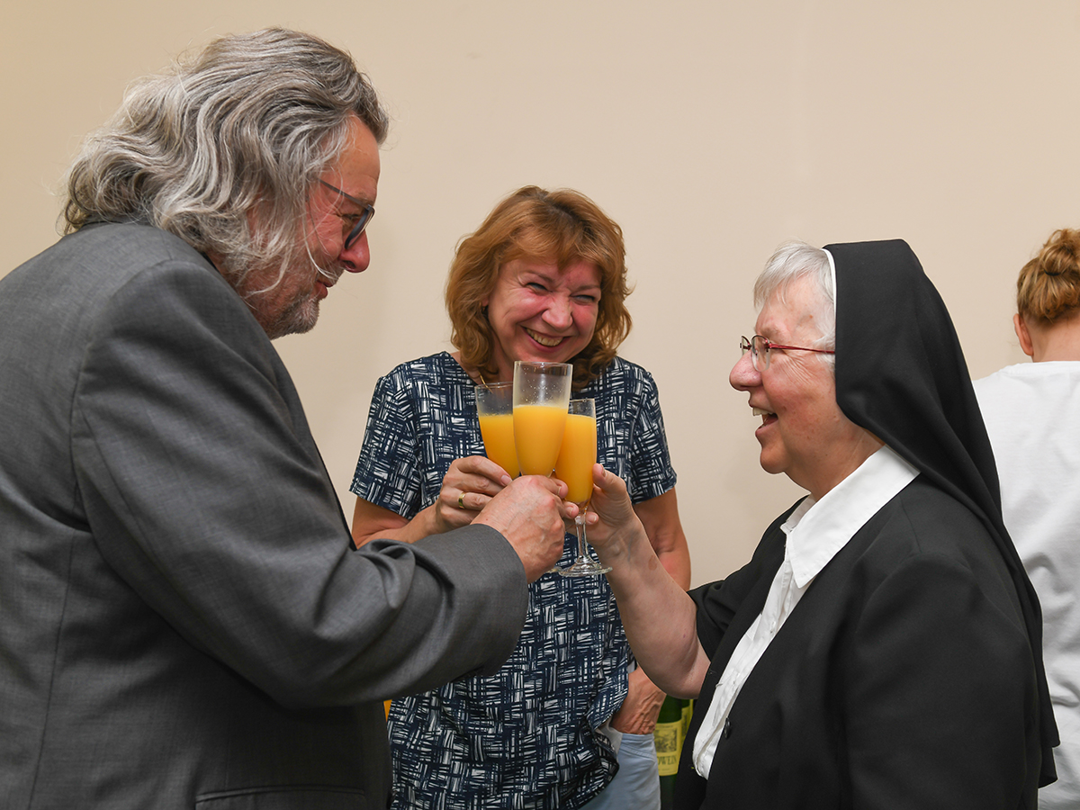 Zu den Gästen zählten neben den zahlreichen Kolleg:innen des Campus auch Vertreter der Ordenskonferenz, hatte sich die angehende Pensionistin ja auch durch ihre Tätigkeit für die Bildungseinrichtungen in Ordenstradition engagiert.