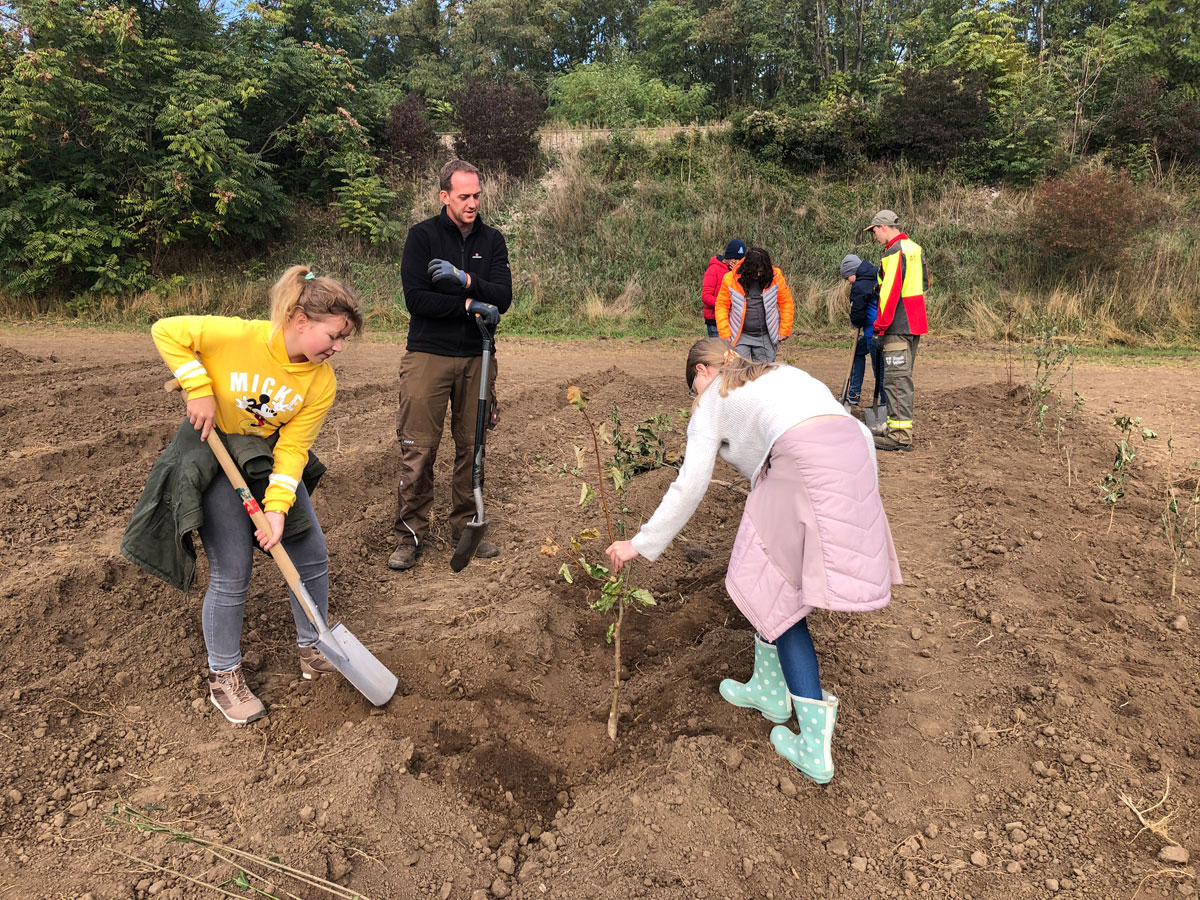 Im Rahmen eines WIENXTRA-Schulprojekts nahm die 2B an einem Aufforstungsprojekt am Wiener Stadtrand teil. Besonders engagiert und begeistert setzten die Schüler*innen insgesamt etwa 80 Bäume und Sträucher gemeinsam mit Mitarbeiter*innen der Stadt Wien. Es war ein lehrreicher und aktiver Vormittag, der in Zeiten der Klimakrise Bewusstsein für Grünflächen in der Stadt schafft. Wir hoffen in einigen Jahren bei einem Wandertag einen Wald bewundern zu können und mit den erhaltenen Koordinaten auch direkt unsere gepflanzten Bäume und Sträucher wieder zu finden.