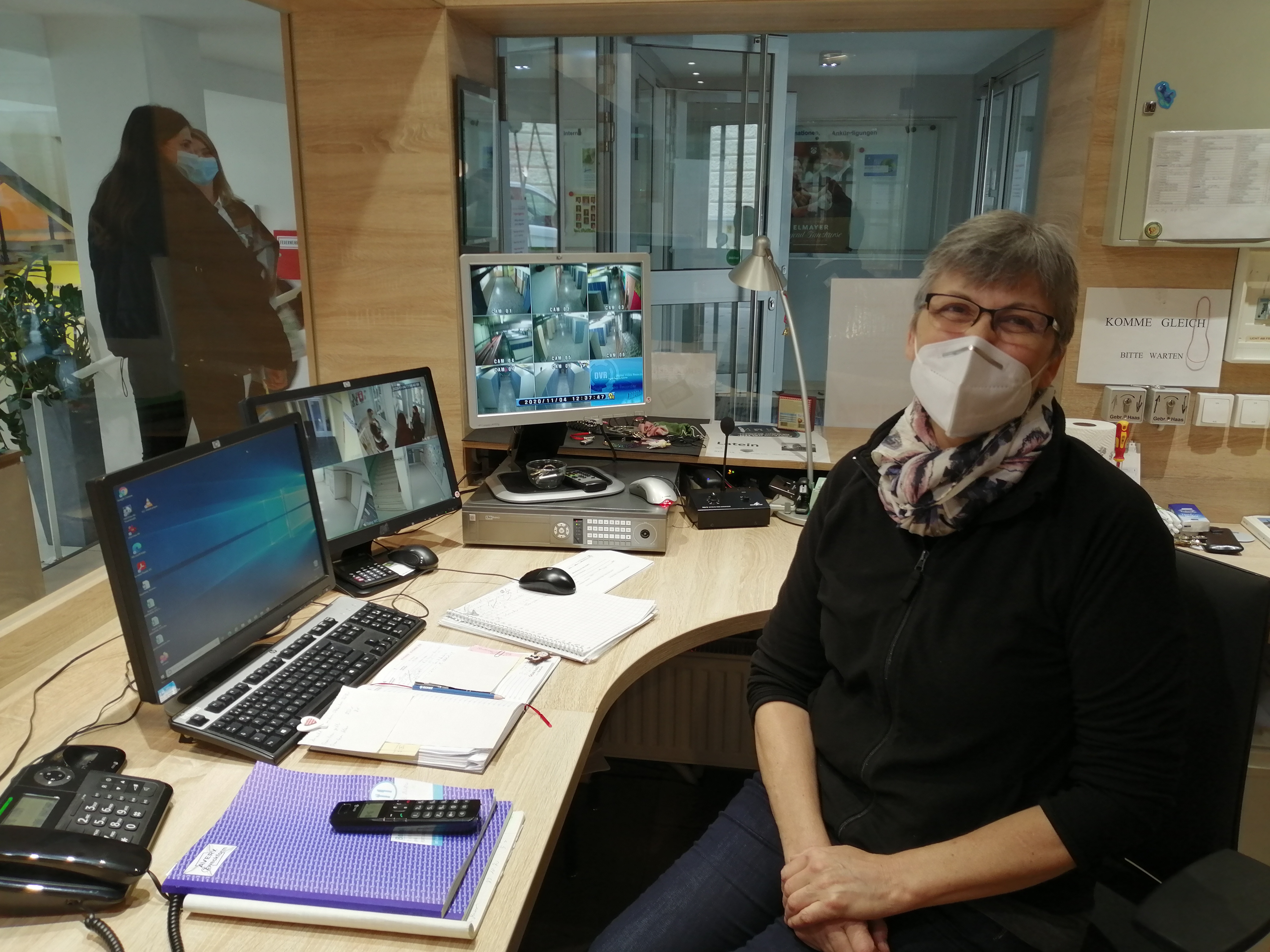 In der Pforte hält Frau Monika Erhart die Stellung, egal, was auch kommen mag. Sie ist das erste freundliche Mitglied unseres Schulzentrumteams, das uns begrüßt, wenn wir durch den Haupteingang die Aula betreten. Mit einem Lächeln im Gesicht sorgt sie sich um die Bedürfnisse von Groß und Klein und findet höflich, aber bestimmt, Lösungen für Kümmernisse der unterschiedlichsten Art.