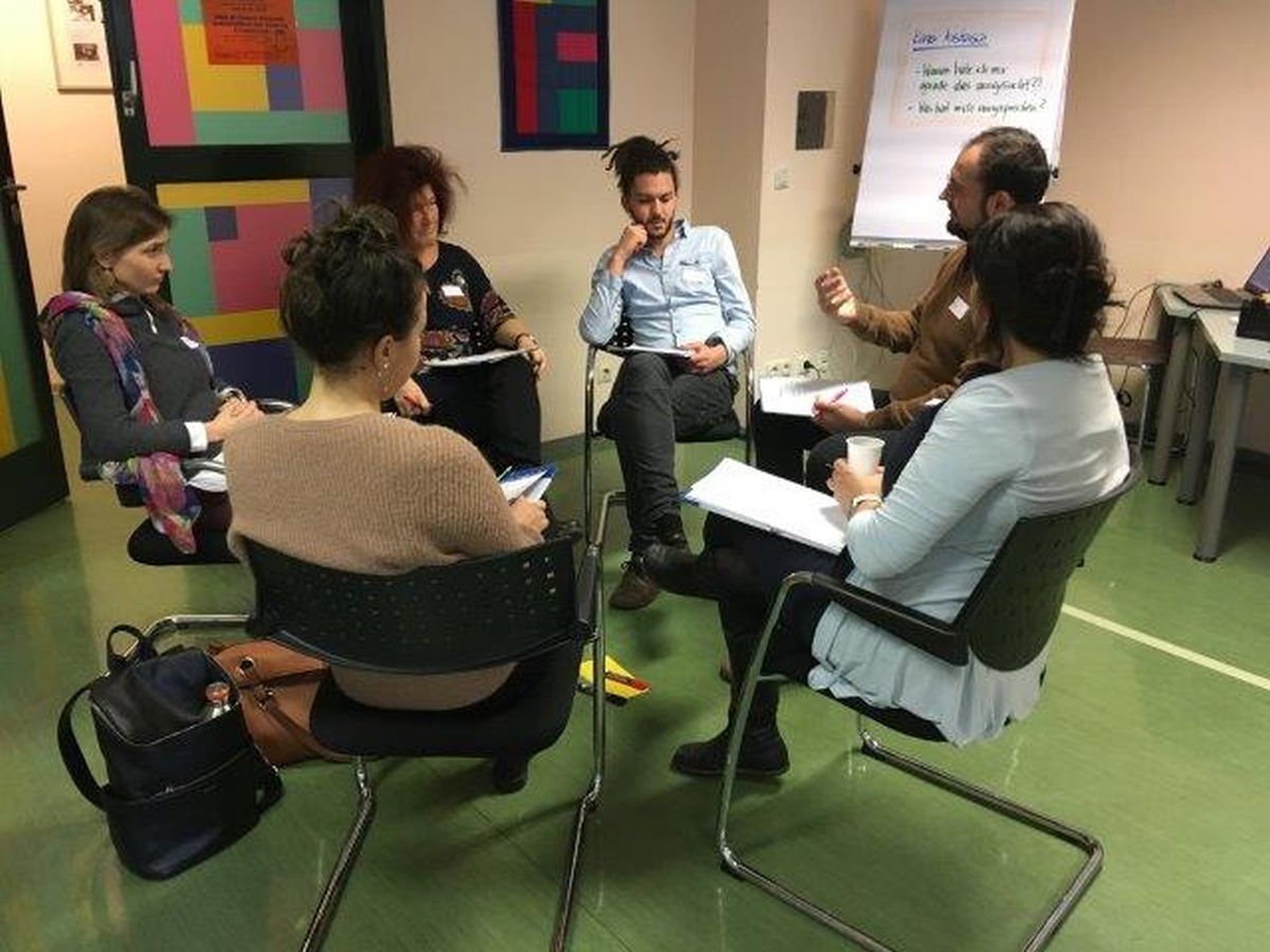 Zu Beginn des Jahres 2018 hat im Schulzentrum Friesgasse ein Prozess der Profilschärfung begonnen, in den alle 160 LehrerInnen sowie die 65 Privatangestellten des Hauses einbezogen werden - denn das Profil als SSND Schule soll von allen mitgetragen werden. Die TeilnehmerInnen durften einen von fünf angebotenen Workshop-Terminen (nach Verteilerschlüssel) auswählen, was einen interessanten Mix der Gruppen ergibt.