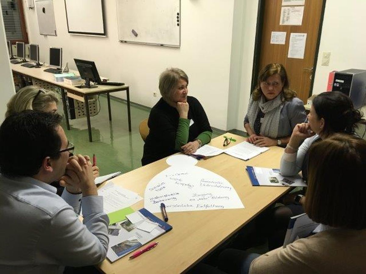 Methodisch kurzweilig und mit vielen Möglichkeiten der Begegnung verlief der erste Workshop in angeregter und launiger Atmosphäre und erfreute sich großer Zustimmung der TeilnehmerInnen. Alle schätzten die inhaltliche Vertiefung und den persönlichen Austausch mit (tlw. noch unbekannten) KollegInnen des Schulzentrums.